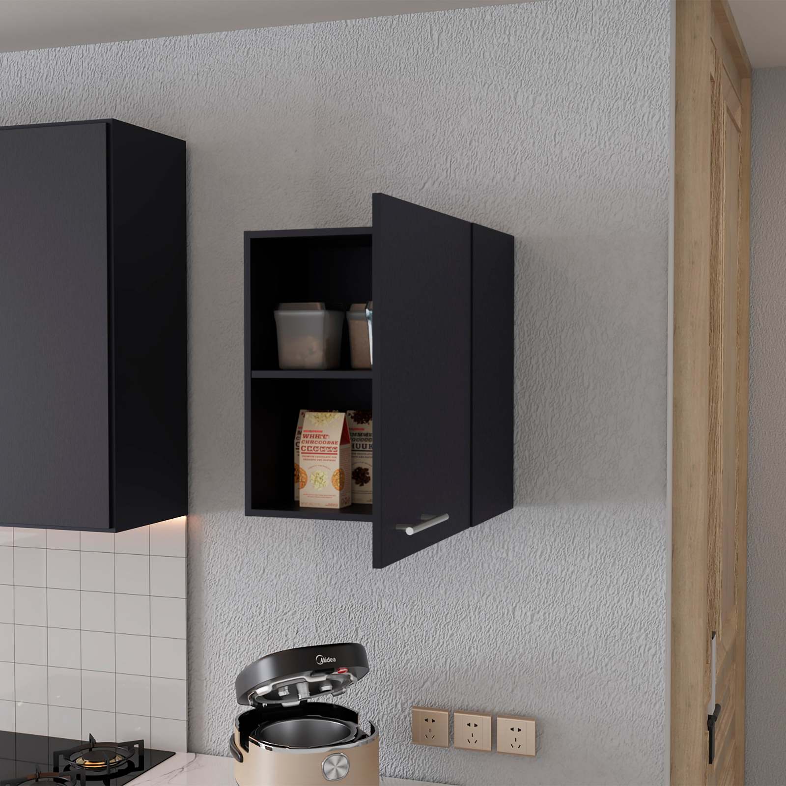 Wall cabinet. Ideal for small spaces, this wall-mounted unit allows you to organize spices, utensils, and other essentials without taking up much room, with two shelves.