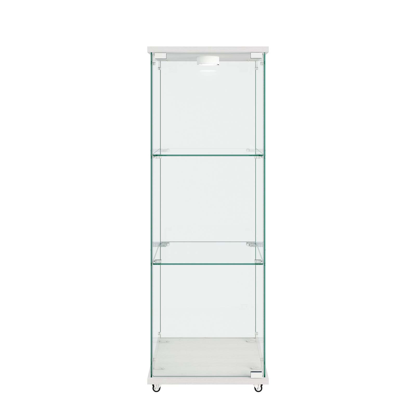 Modern White Glass Display Cabinet LED, Quick Assembly Bookshelf Tempered
