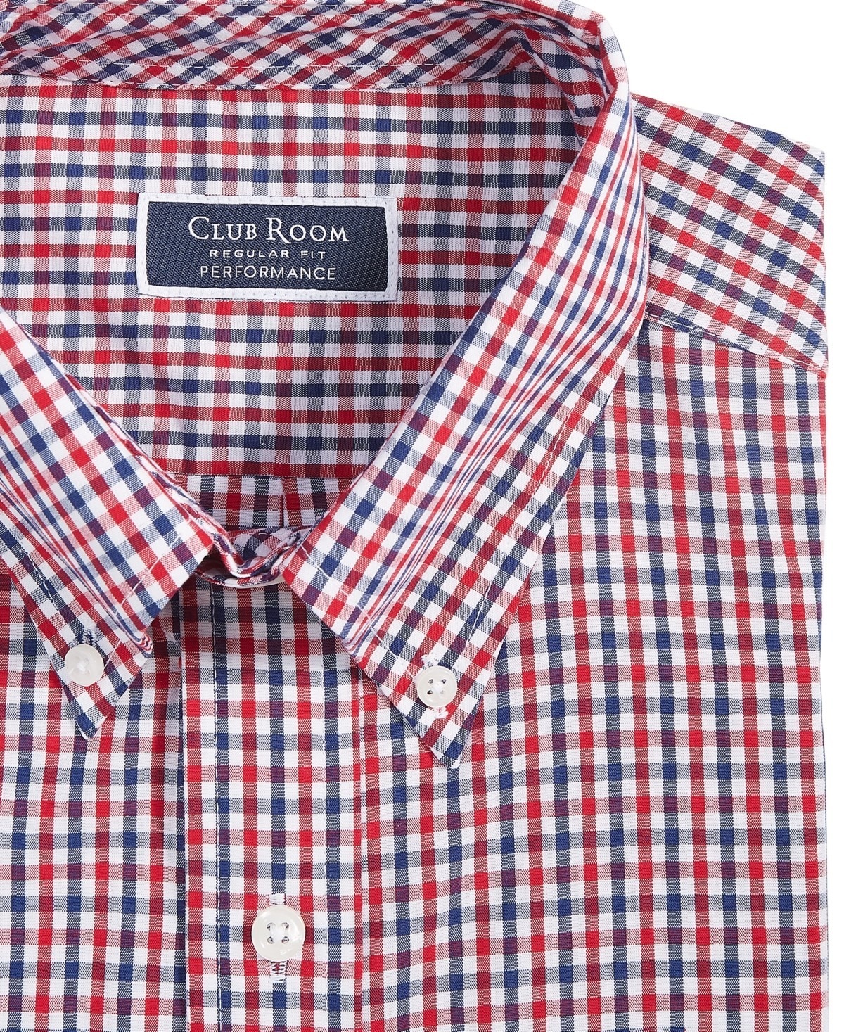 Club Room Dress Shirt Men's 17 34/35 Red Navy Regular-Fit Gingham All Cotton