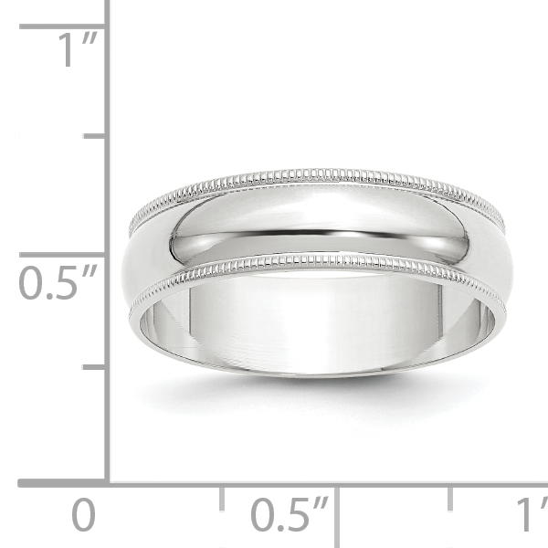 14k White Gold 6mm Lightweight Milgrain Half Round Wedding Band Size 11.5 WML060
