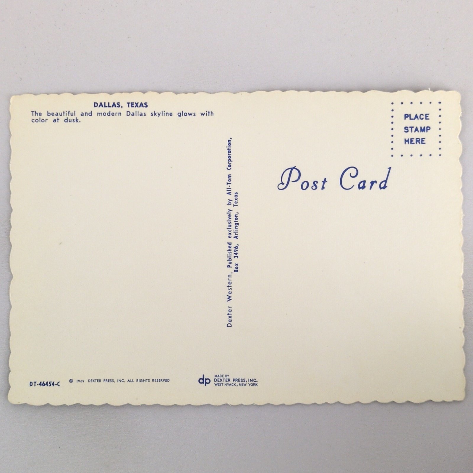 Dallas Texas Hub of the Southwest Night 1960s 4x6 Deckle Edge Postcard Unposted