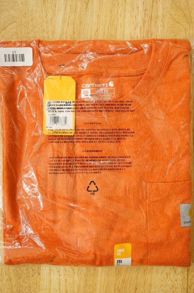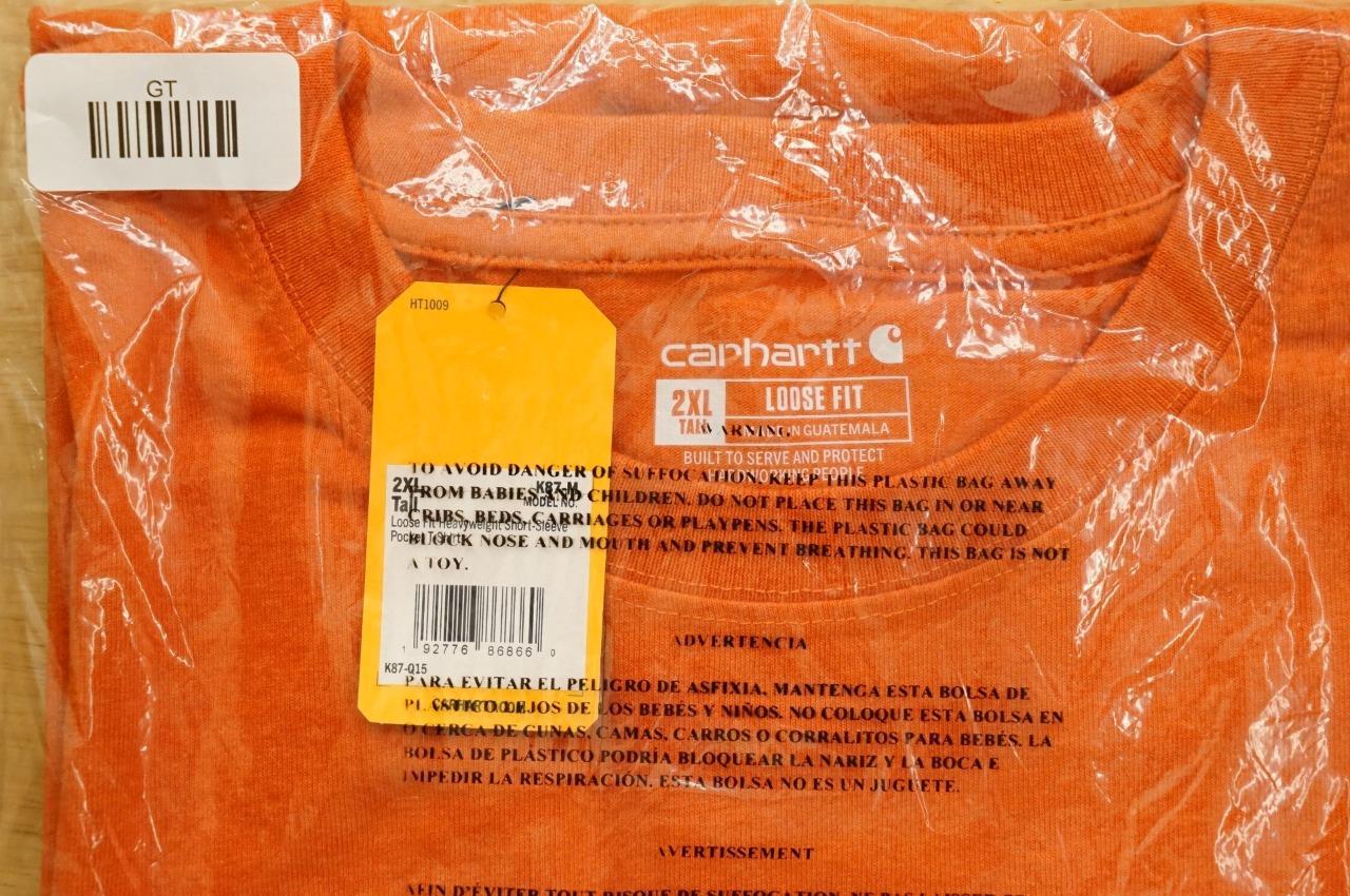 NWT Carhartt K87 Mens Short Sleeved Shirt Heavyweight Loose Fit Orange 2XL - sealed in the original sales bag.