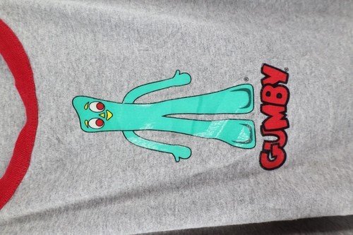 Vintage Y2K 2003 Womens 2XL Faded Spell Out Gumby Ringer T-Shirt Heather Gray