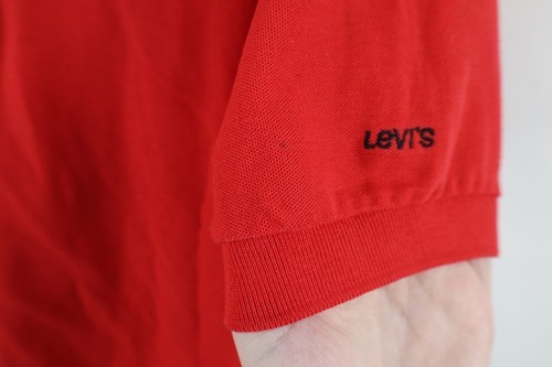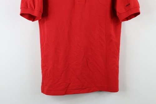 Vintage 80s Levis Mens Medium Faded Spell Out Knit Short Sleeve Polo Shirt Red