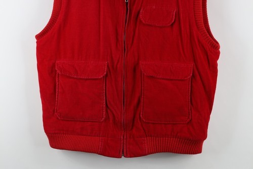Vintage 70s 80s Streetwear Mens XL Faded Corduroy Quilted Puffer Vest Jacket Red