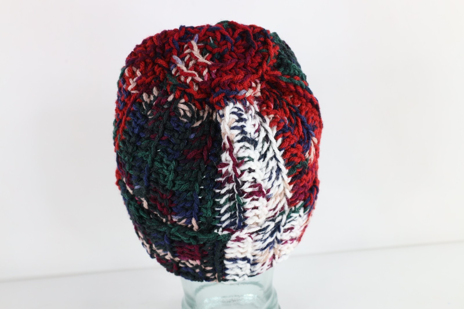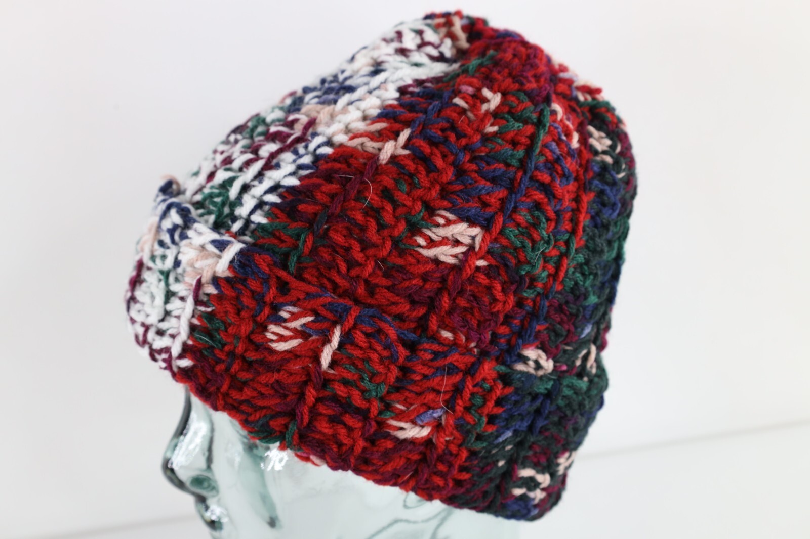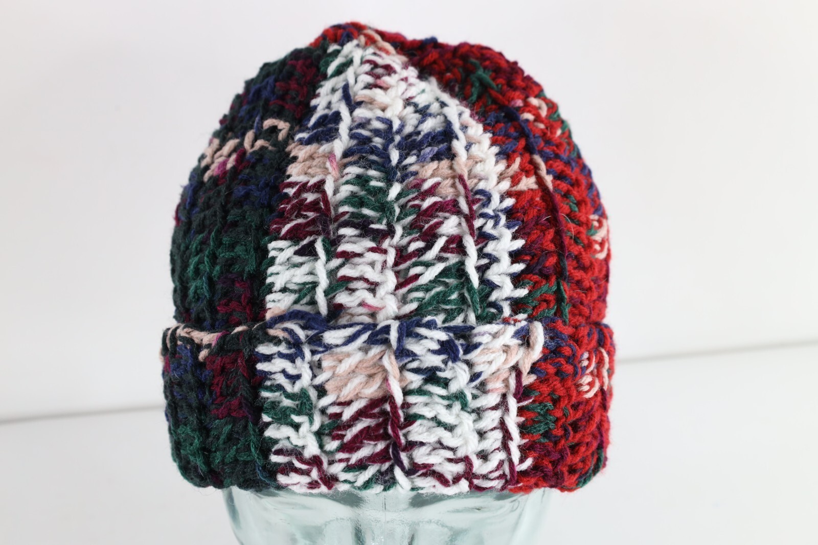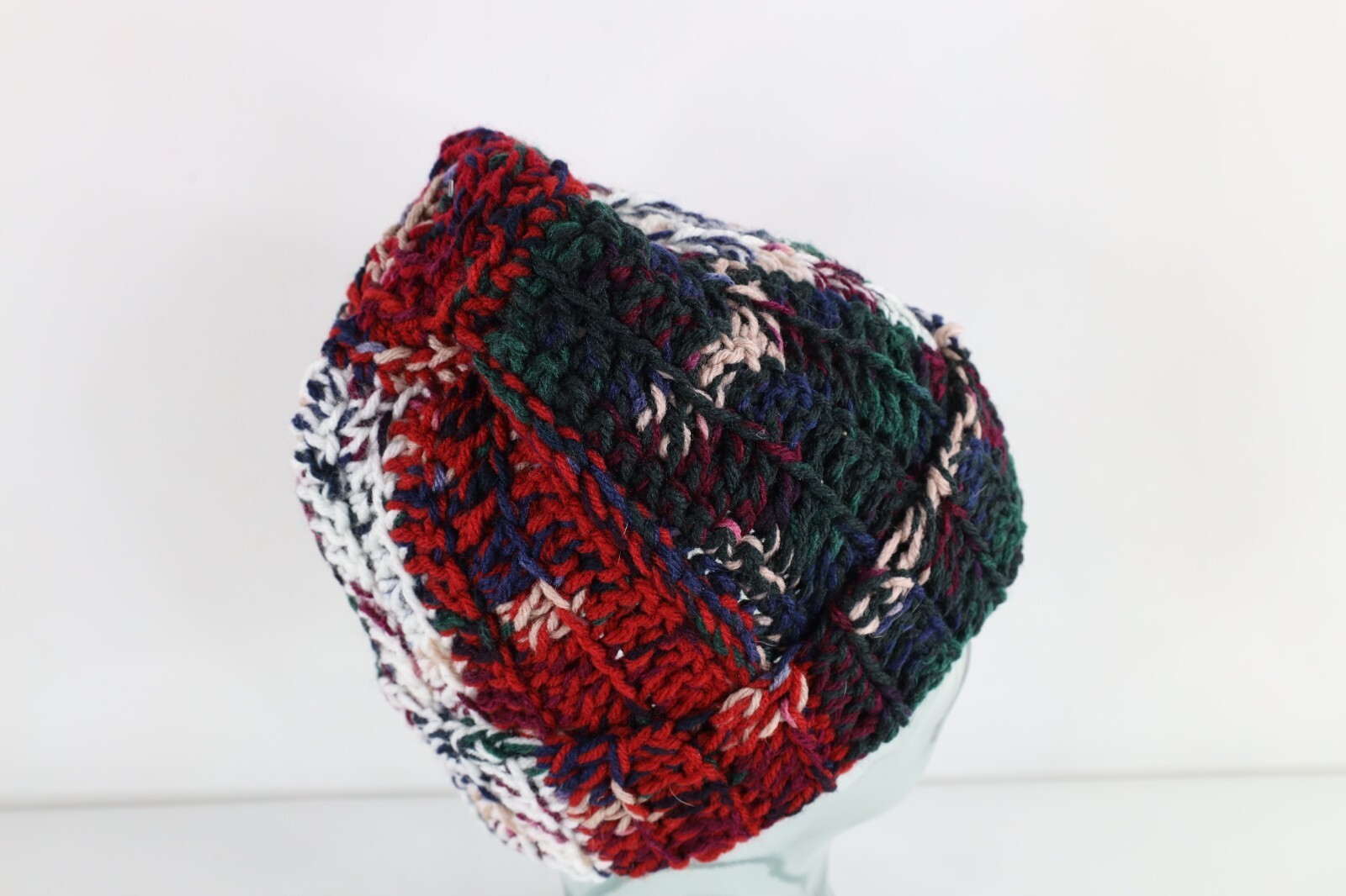 Vintage 90s Streetwear Rainbow Chunky Crochet Knit Winter Beanie Hat Cap OSFA