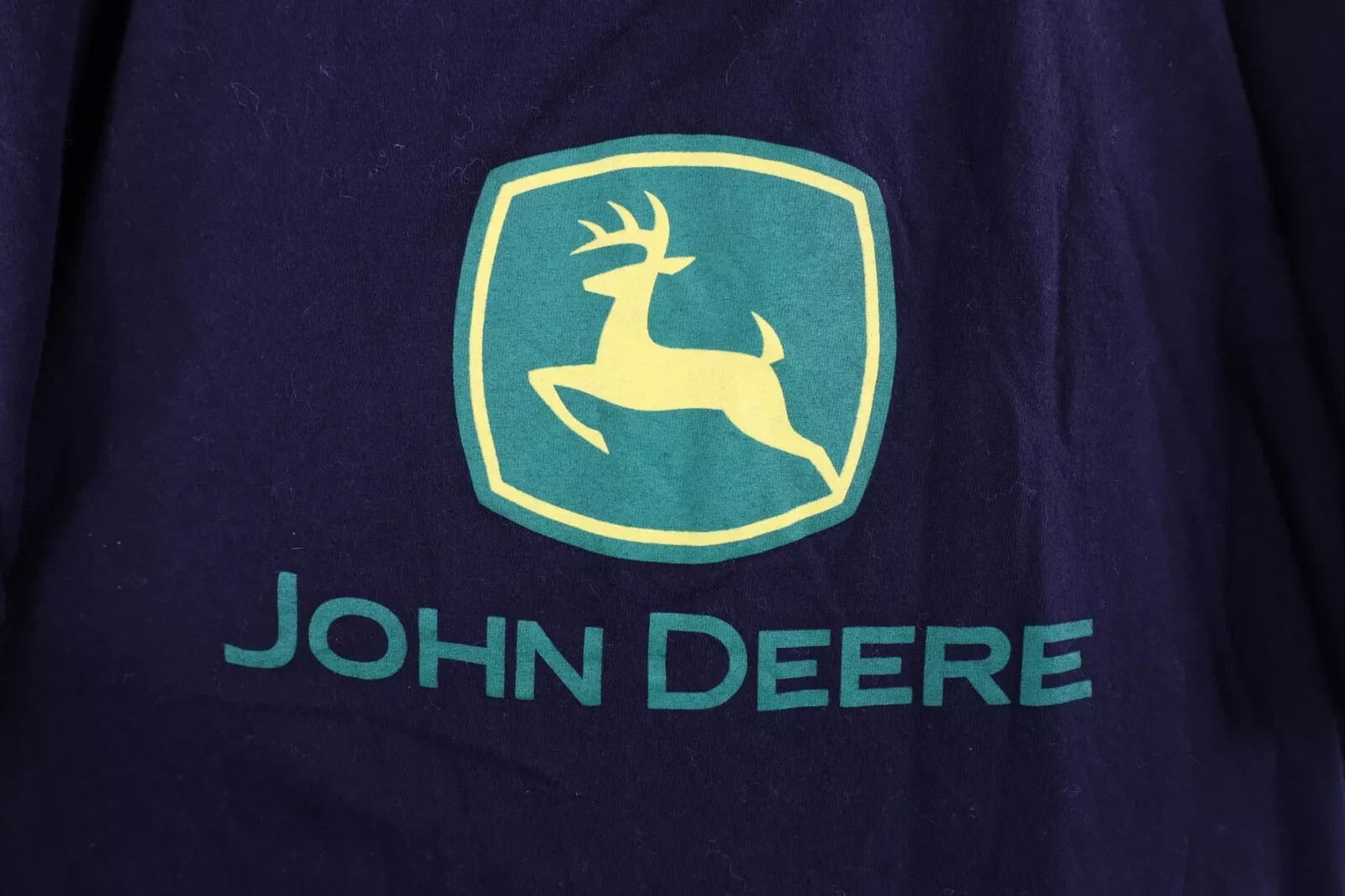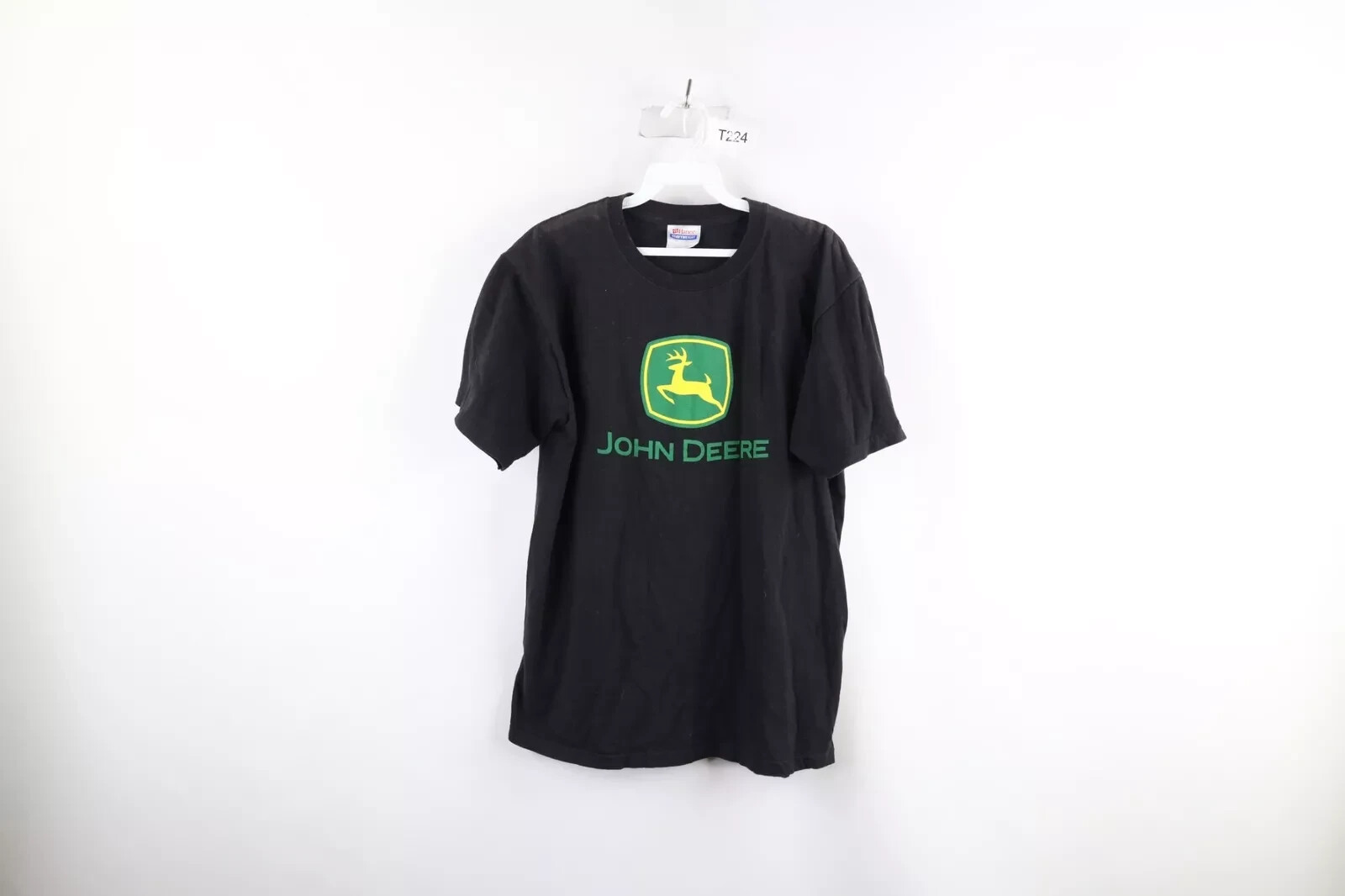 Vintage Mens Size Medium Faded Spell Out John Deere Short Sleeve T-Shirt Black