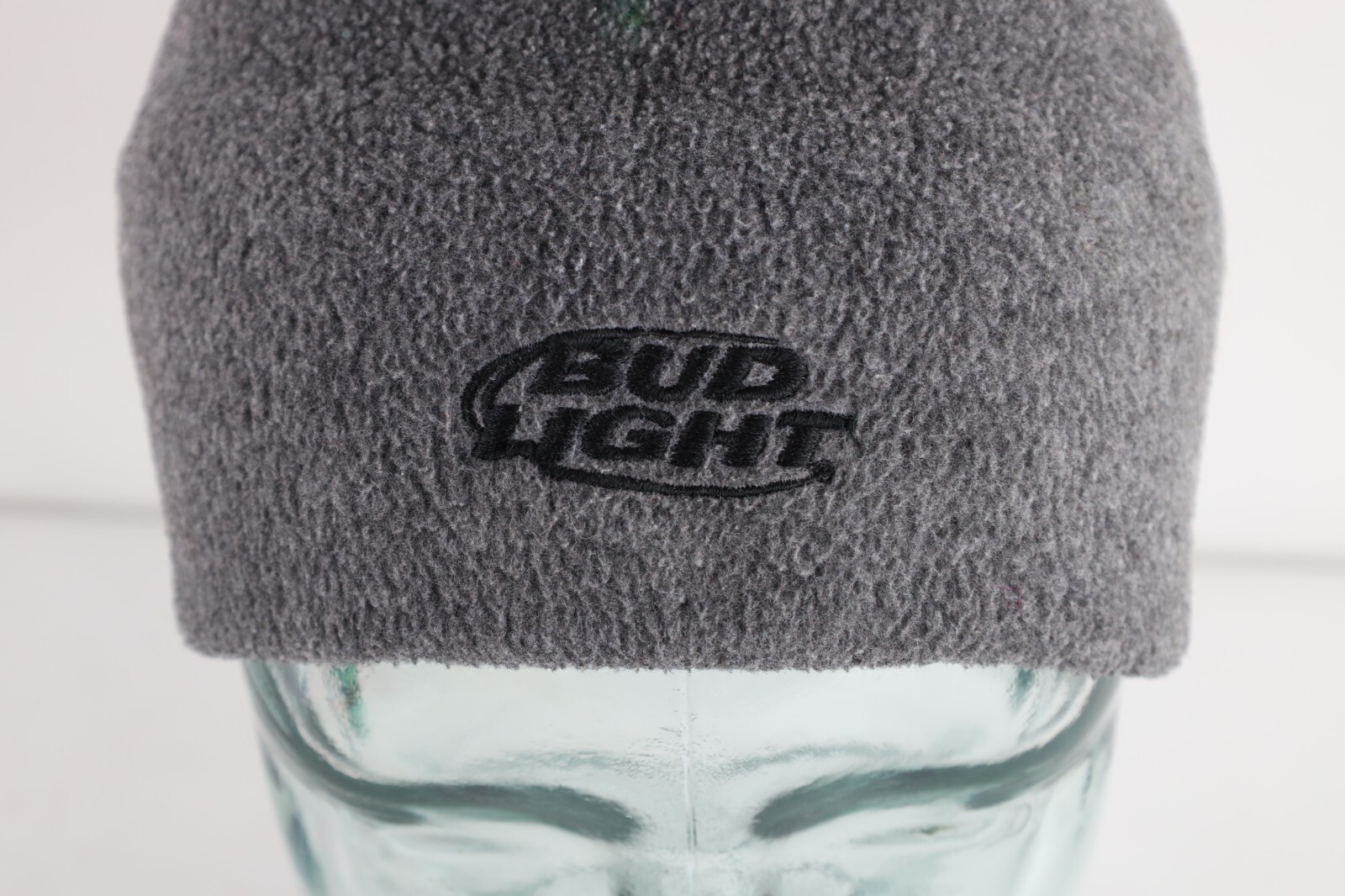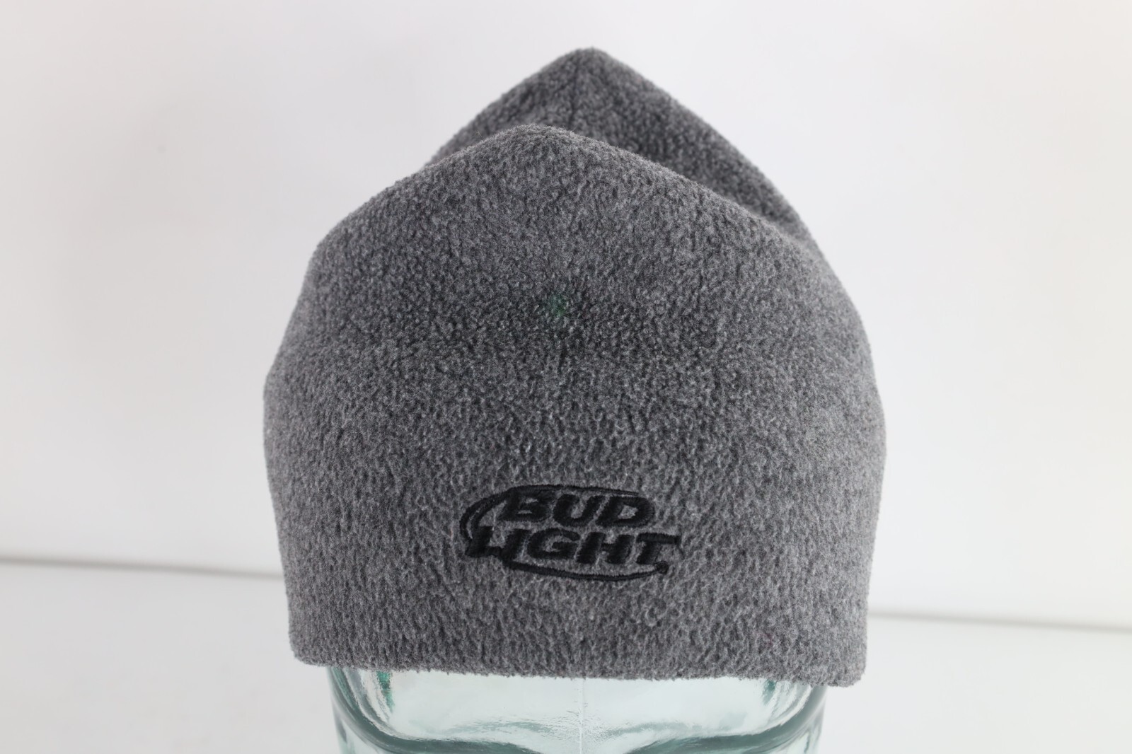 Vintage 90s Streetwear Spell Out Bud Light Beer Fleece Beanie Hat Cap Gray OSFA