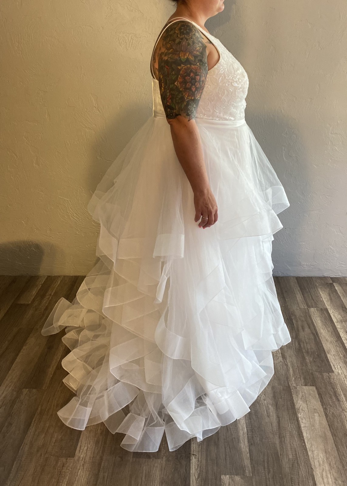 David's Bridal Floral Sequin Tiered Plus Size 20W Softwhite Wedding Dress New