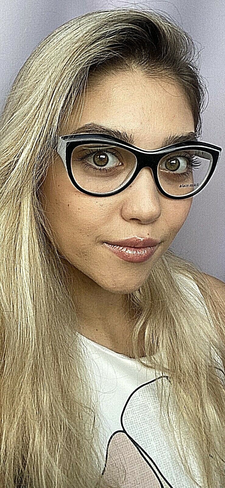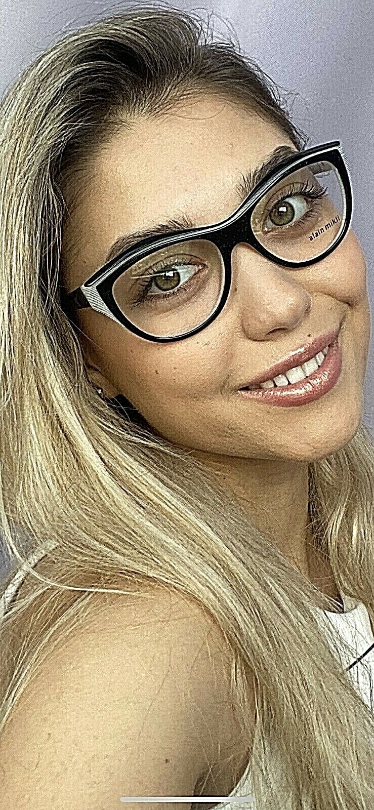 New ALAIN MIKLI A 03041 52mm Black Cat Eye Women's Eyeglasses Italy