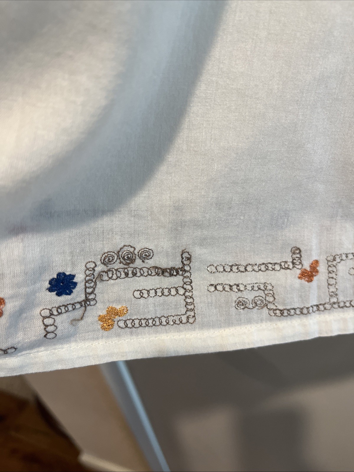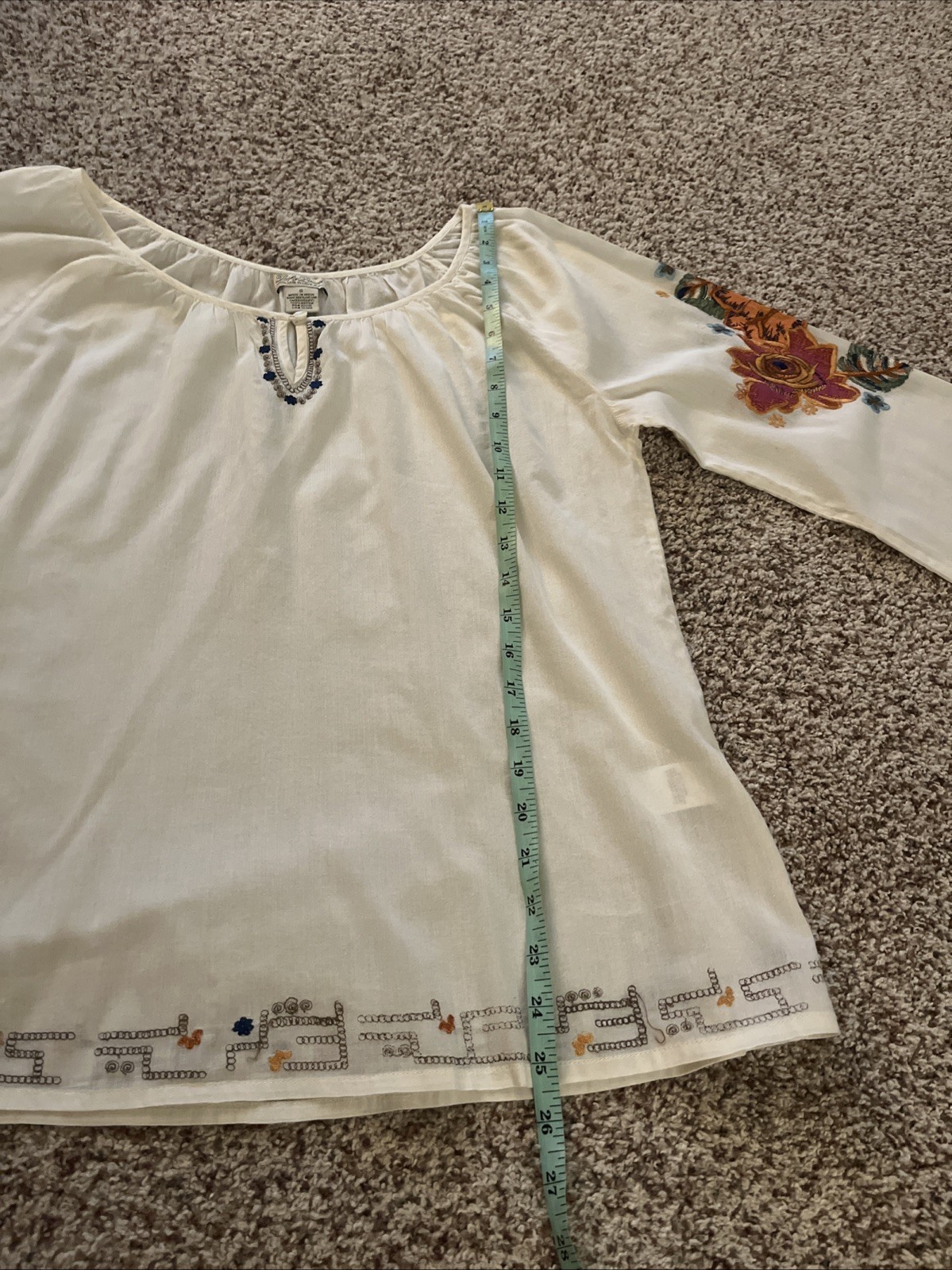 Lucky Brand Women’s S Top Floral Embroidered Sleeve Ivory Blouse Boho Shirt