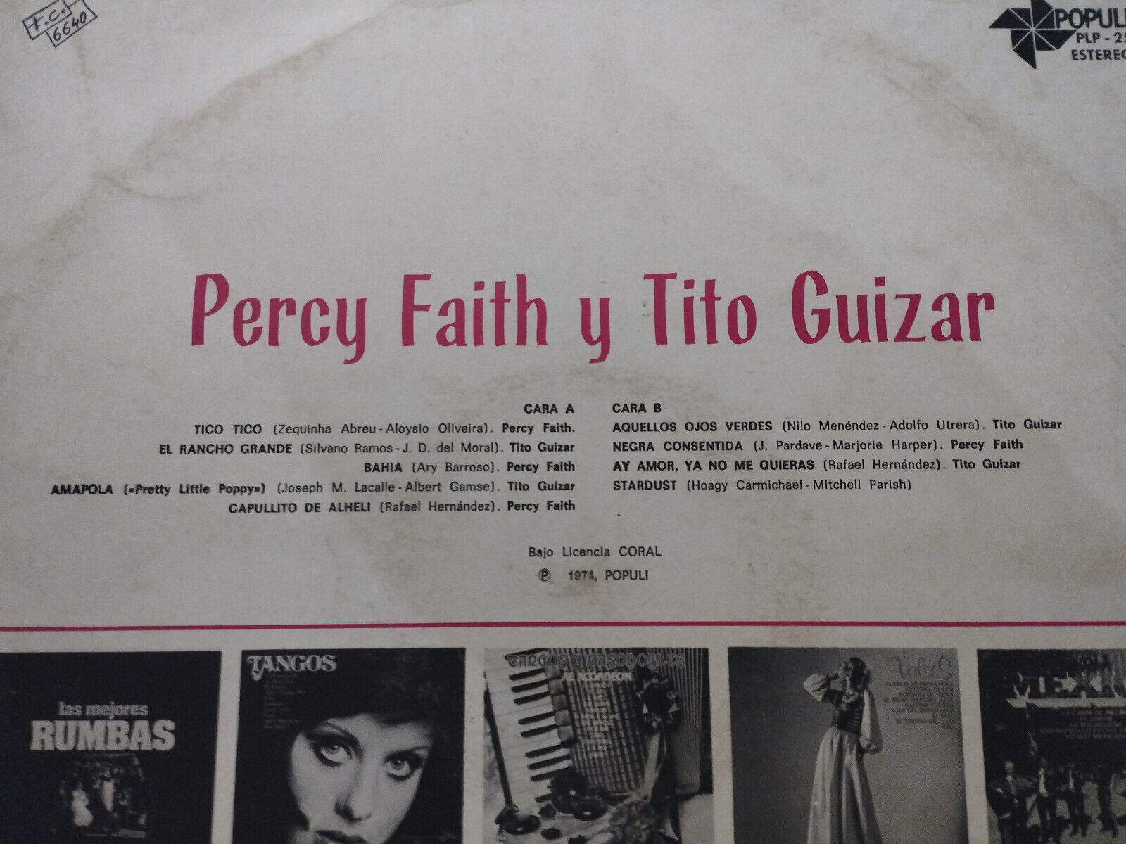 Percy Faith and Tito Guizar Rancho Grande 1974 - LP vinyl 12 "G+/G-