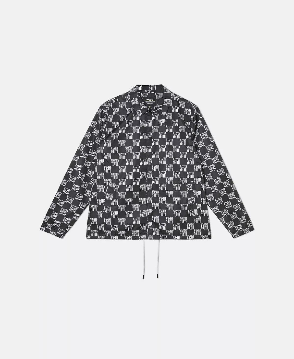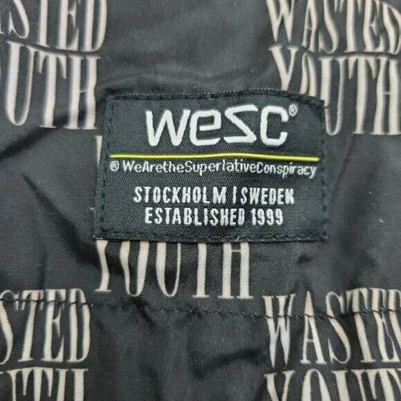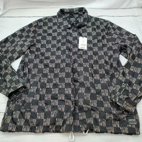 WeSC Men's Coach Wasted Youth Printed Jacket in Black-Size Large