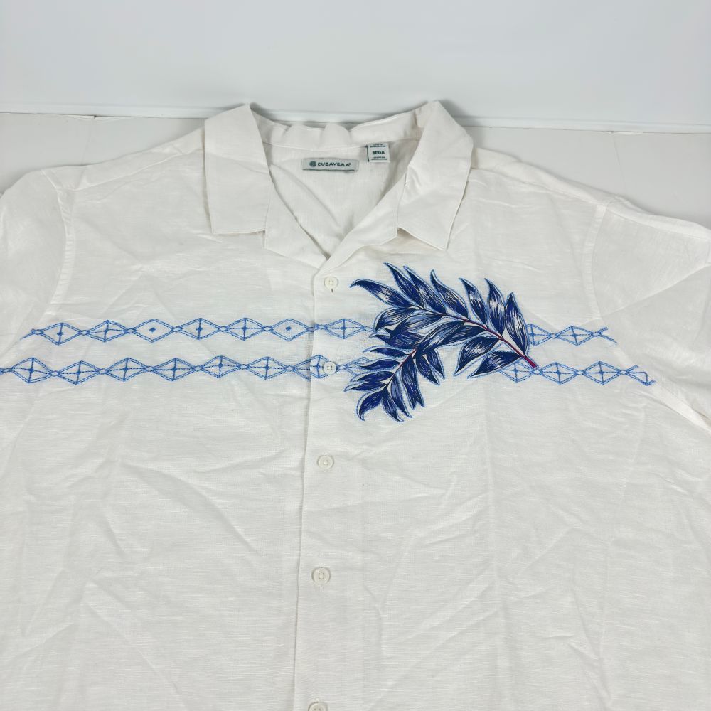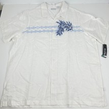 Cubavera Mens Big & Tall Leaf Print Short-Sleeve Camp Shirt Brilliant White-3XLT