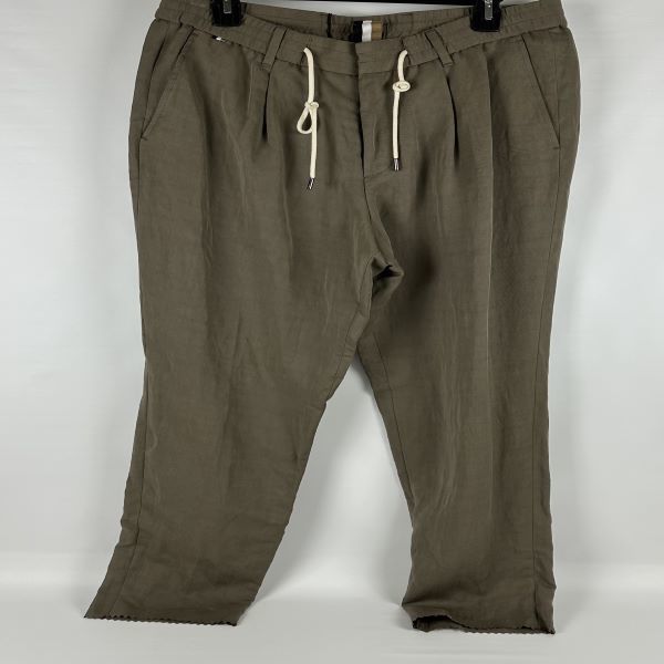 Boss Mens Relaxed Fit Perin Tapered Pants in Open Green-34R Unhemmed