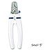 These durable plier style Pet Nail Clippers are a must-have for every pro or at home groomer. These clippers are quality made of stainless steel to stand up to years of use. Comfortable grips and a spring-loaded mechanism for more positive cutting action. Lightweight clippers feature heavy duty stainless steel blades. Injection molded plastic handles. Two different sizes make more effective clipping on all size dogs. Lock allows you to store the blades in the closed position. These are pro level clippers, with a distinctive, designer style white with blue stripe design. Material: Stainless steel blades; Injection-molded plastic handles Available in 5" Small, 7" Large or a Groomer's Set of Both Sizes.