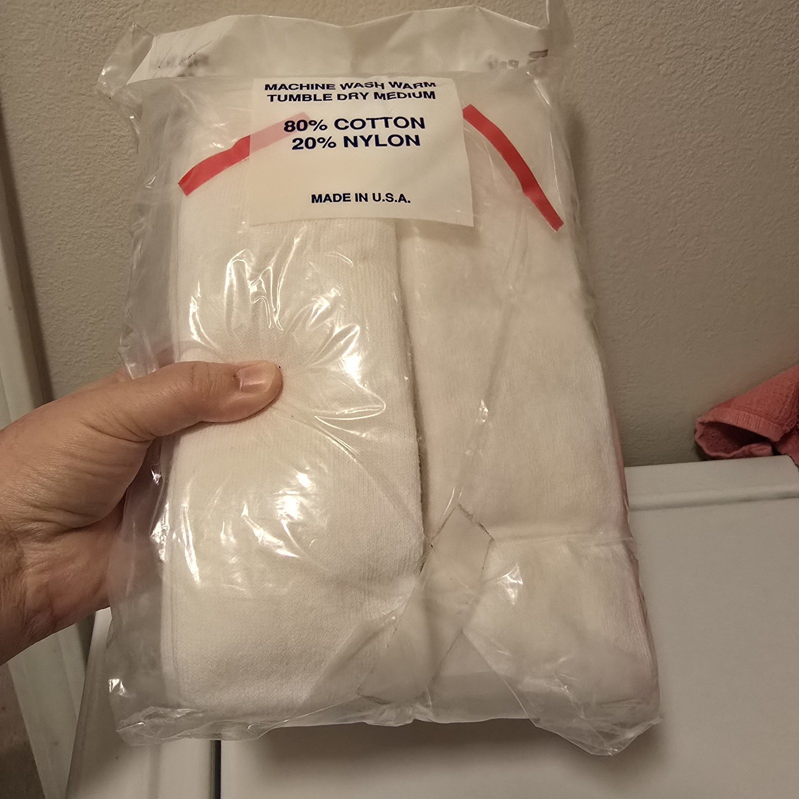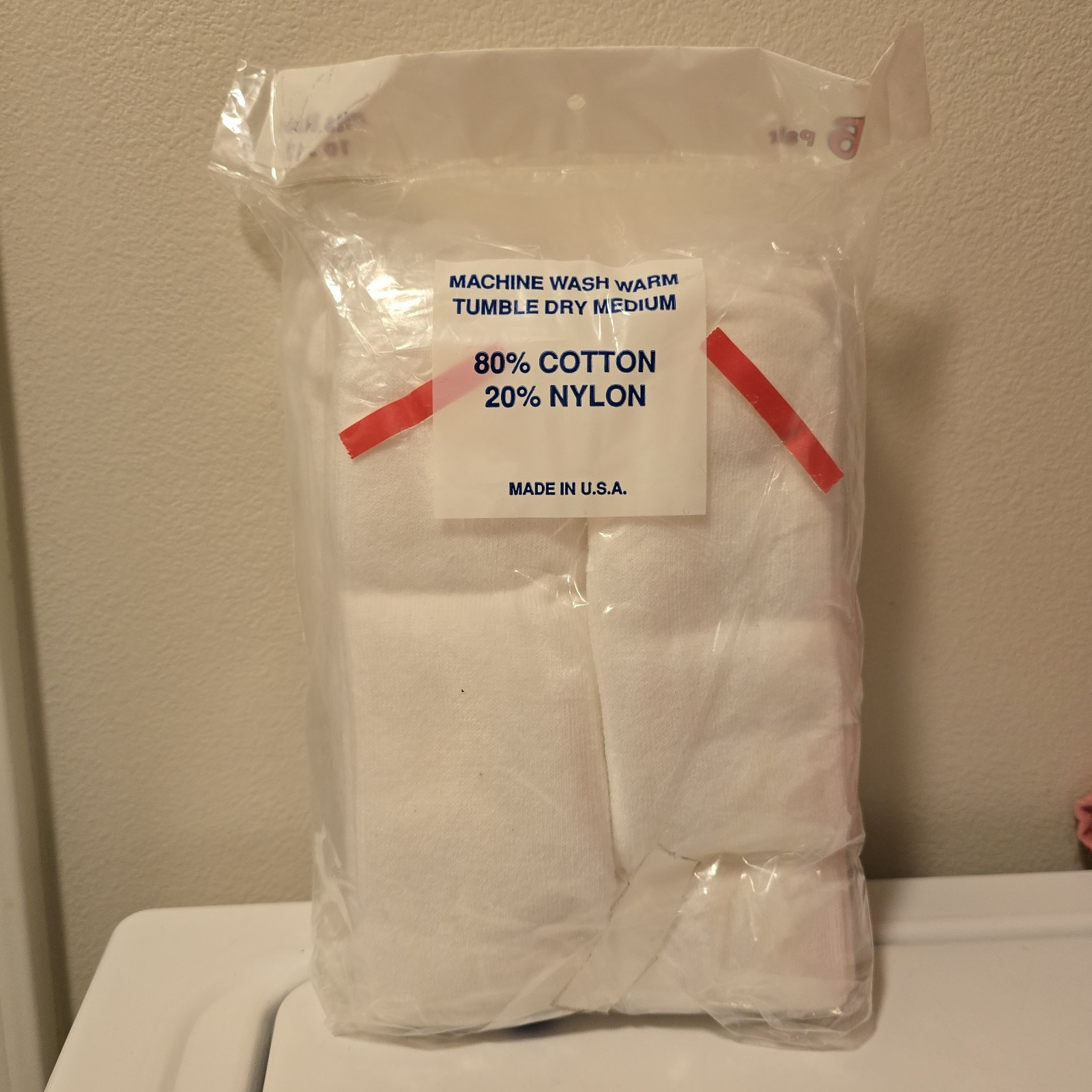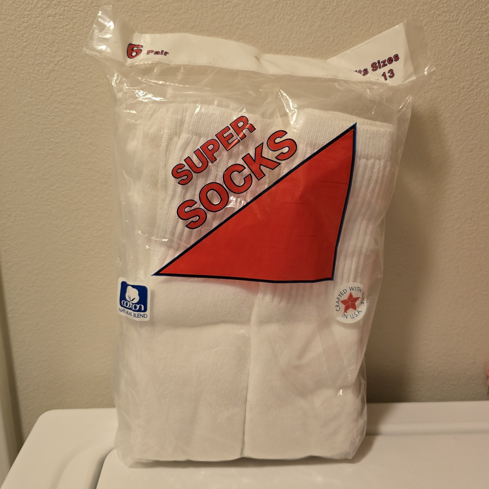 New in Taped Package Unbranded Vintage Over The Calf Tube Socks "Super Socks" 6 Pairs - Fits Size 10 - 13. Cotton / Nylon Blend. Made in USA.