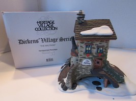 Dept 56 "The Maltings" Dickens Village #58335 Introduced in 1995, Retired in 1998. Great condition piece in original box sleeve. This building is used to roast or malt barley for brewing beer and ale. It is a home, shop and bridge in one construct of stone, stucco and wood. Large doors allow carts to enter.