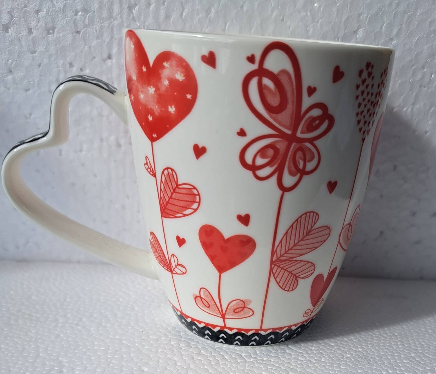 Red Hearts, Love, Flower Petals" Porcelain Coffee Mug, A Burton + Burton Collec