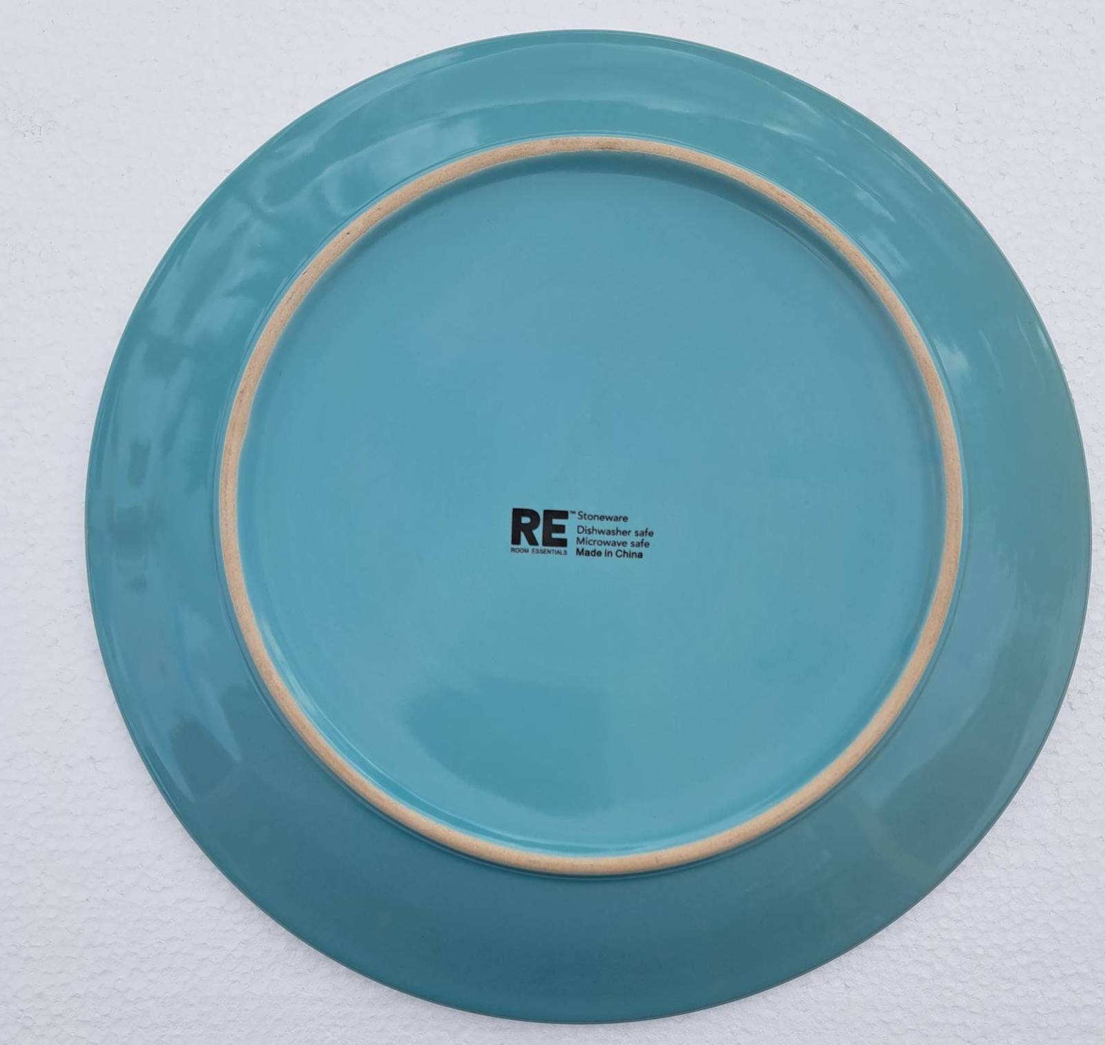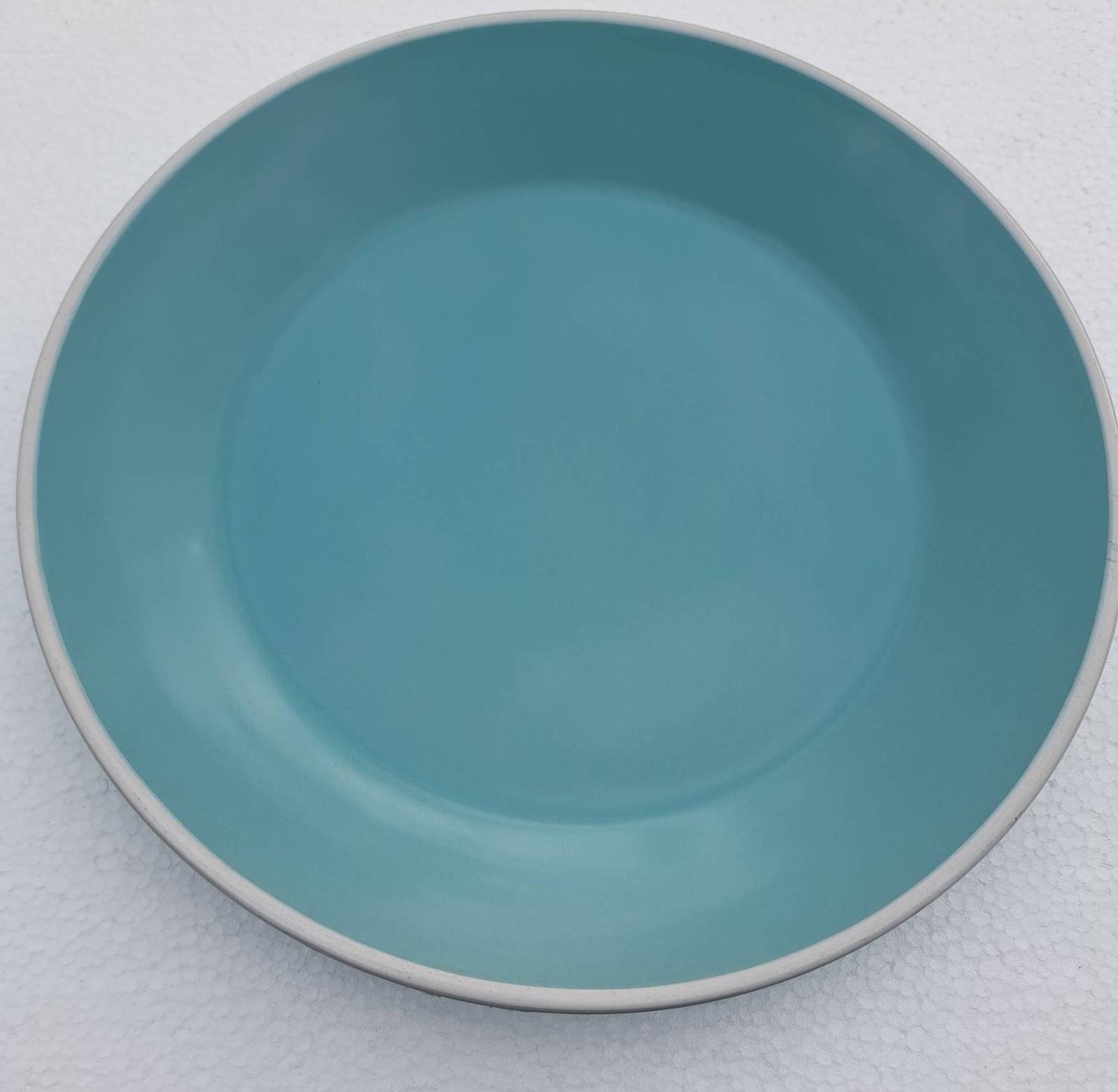 Vintage Turquoise Blue with white trim edging Color Stoneware Collectible Dinner Plate by Room Essentials