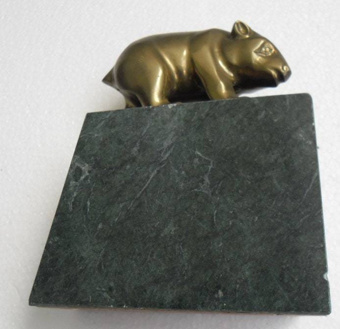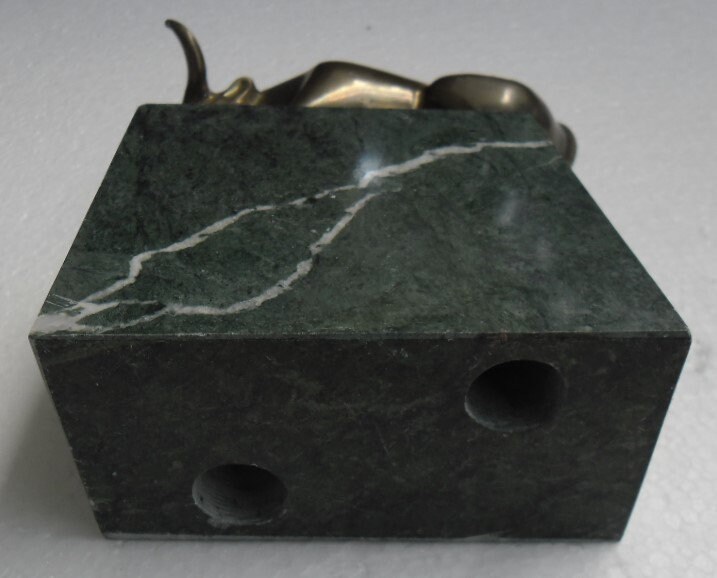 Vintage Solid Brass Collectible Handmade Detailed Bull Bear Mid Century on a Solid Marble Block Table Display/Bookends 6"