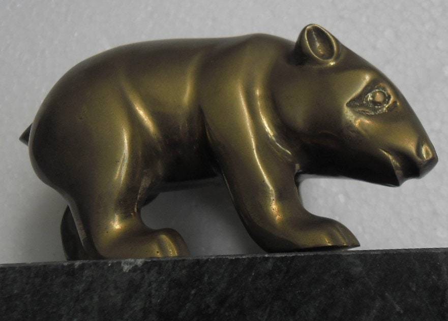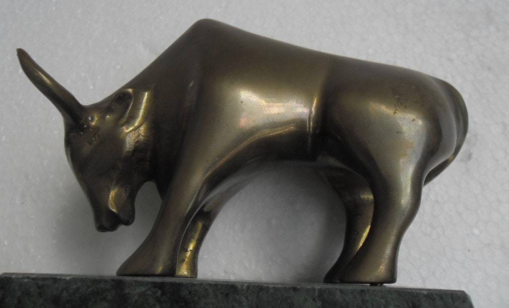 Vintage Solid Brass Collectible Handmade Detailed Bull & Bear Mid Century on a S