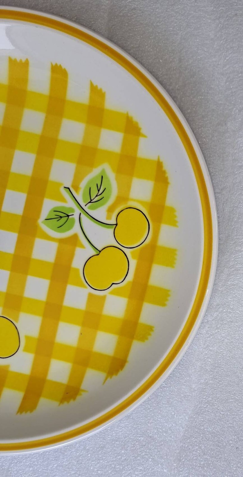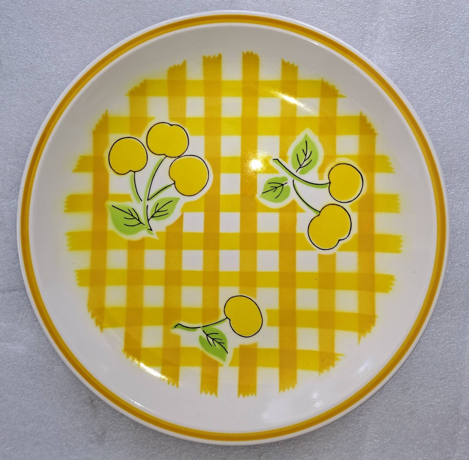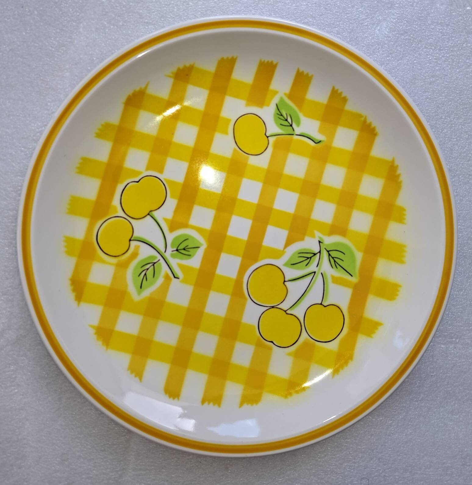 Beautiful Yellow plate with cherries on a basket weave design.