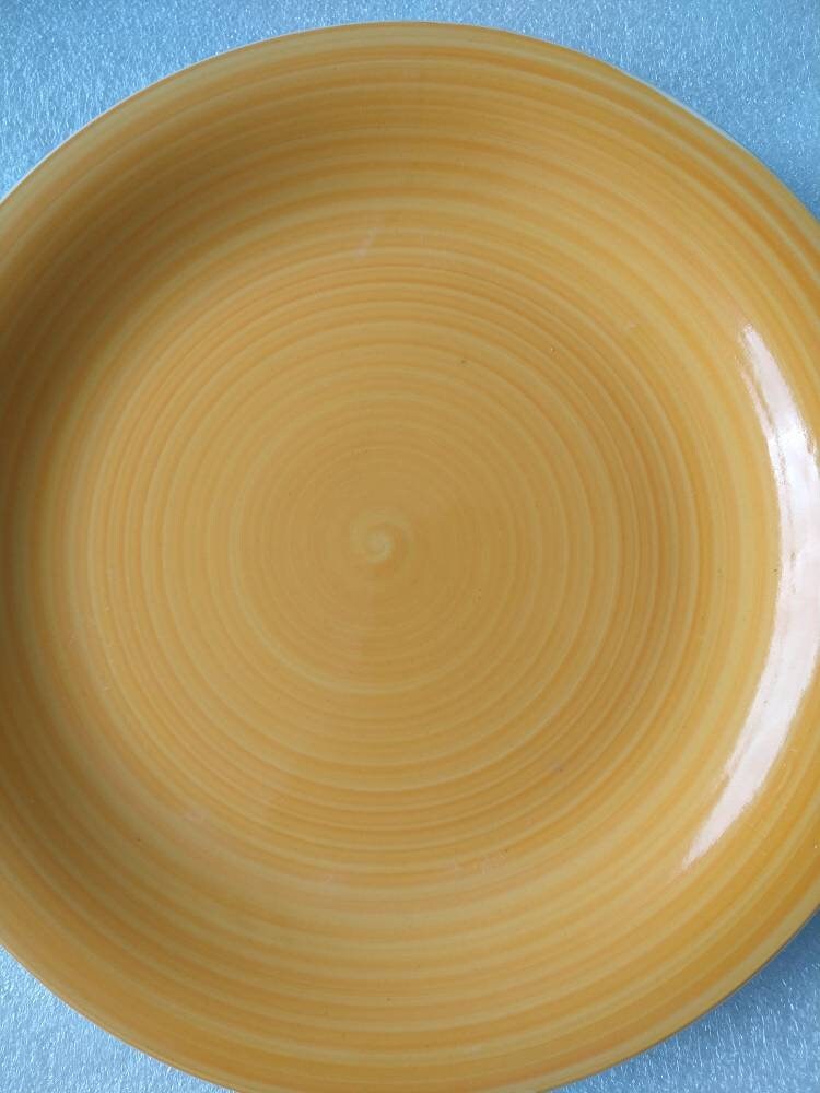 The stoneware dinner plate is in like new condition, but has been gently used, may have some utensil marks (please see pictures) and is in great condition
