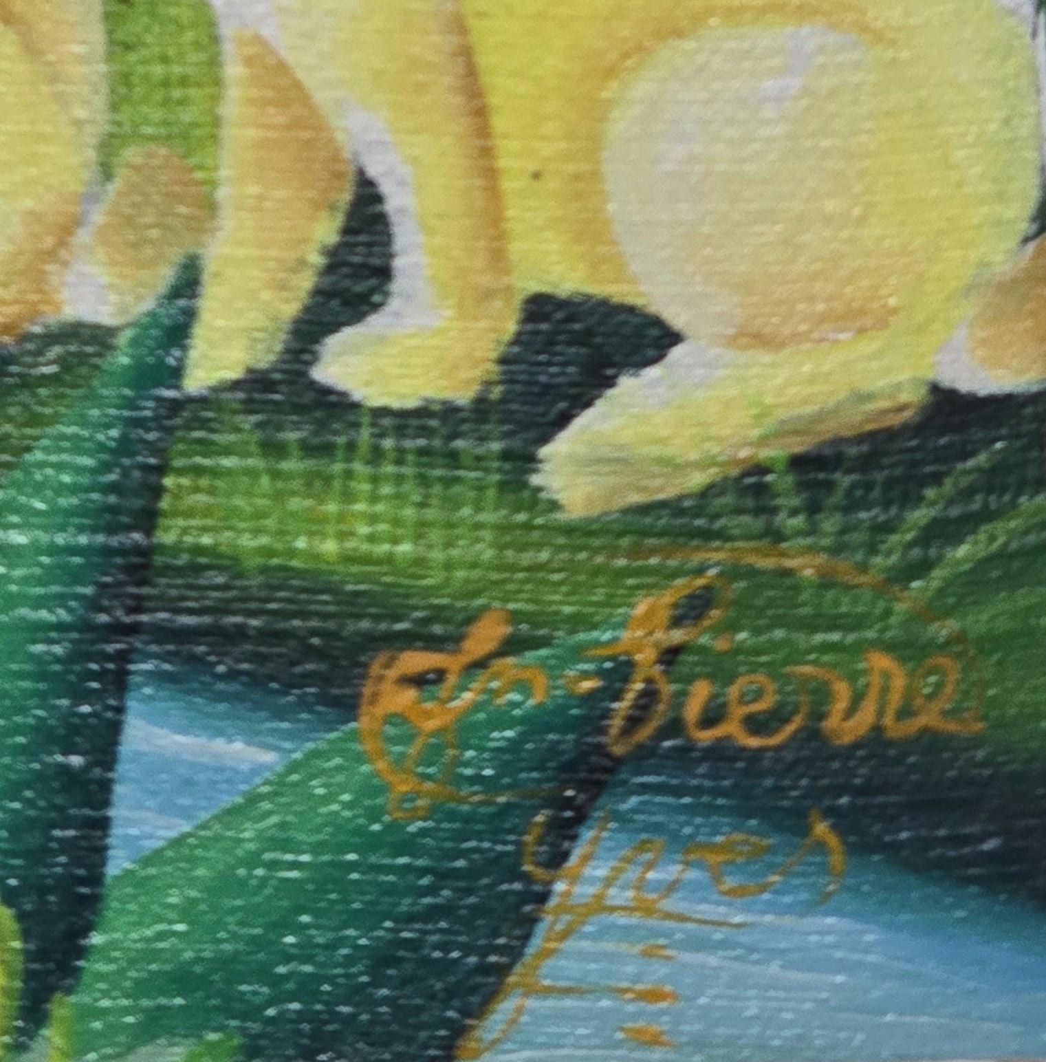 Yves Jean-Pierre was born in Port-au-Prince , Haiti in 1942. Raised in the impoverished city by his family, Yves escaped to an ideal world by painting vivid images of fantasy on paper. By age 15, he worked as a dock worker in the busy harbor of Port-au-Prince. He joined the Centre dArt in 1965. His work consists mainly of small nature scenes. Since the mid-seventies, his amusing jungle paintings, which mix African and Haitian animals and vegetation, have become popular with American and European collectors