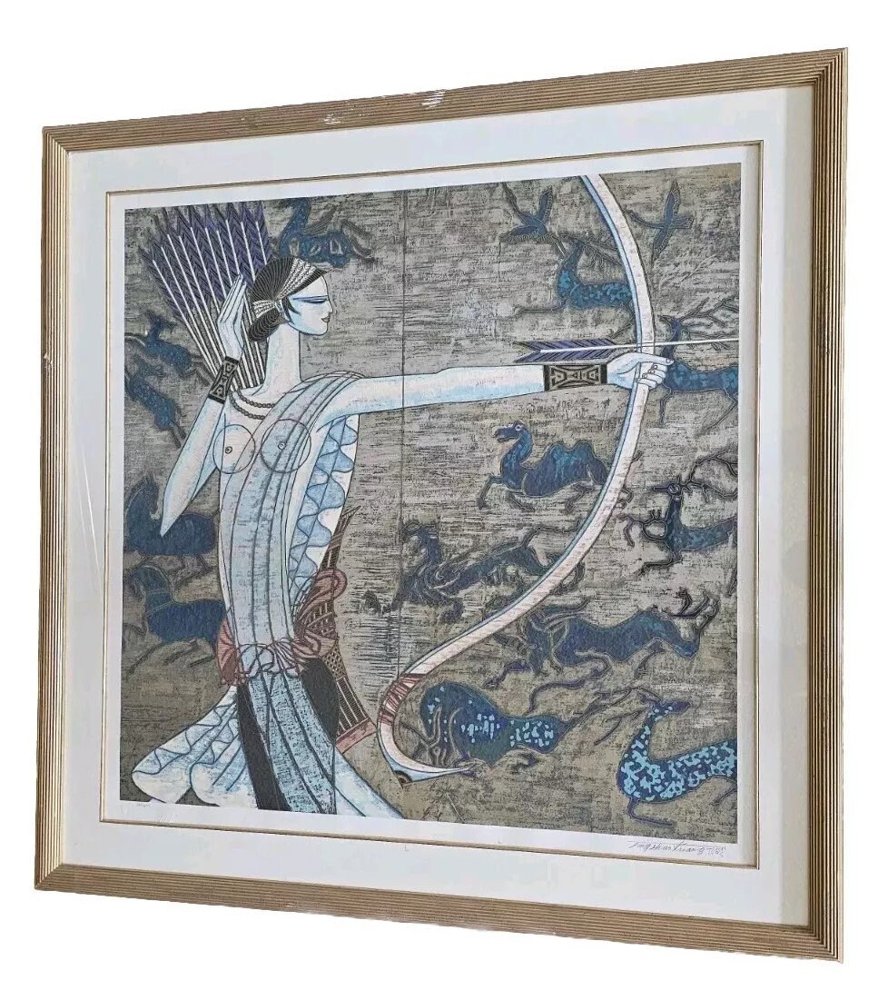 1988 Framed & Signed Ting Shao Kuang HUNTING AGES 101/275 Serigraph Asian Orient