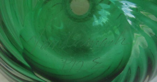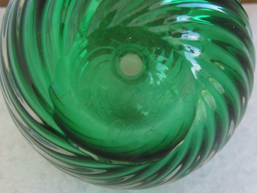 Hand Designed Green Swirled Style Perfume Bottle with Stopper by Vandermark Merr