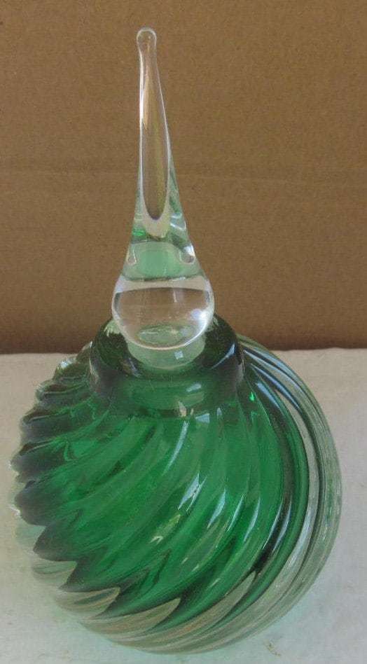 Vintage Hand Designed Green Swirled Style Perfume Bottle with Stopper