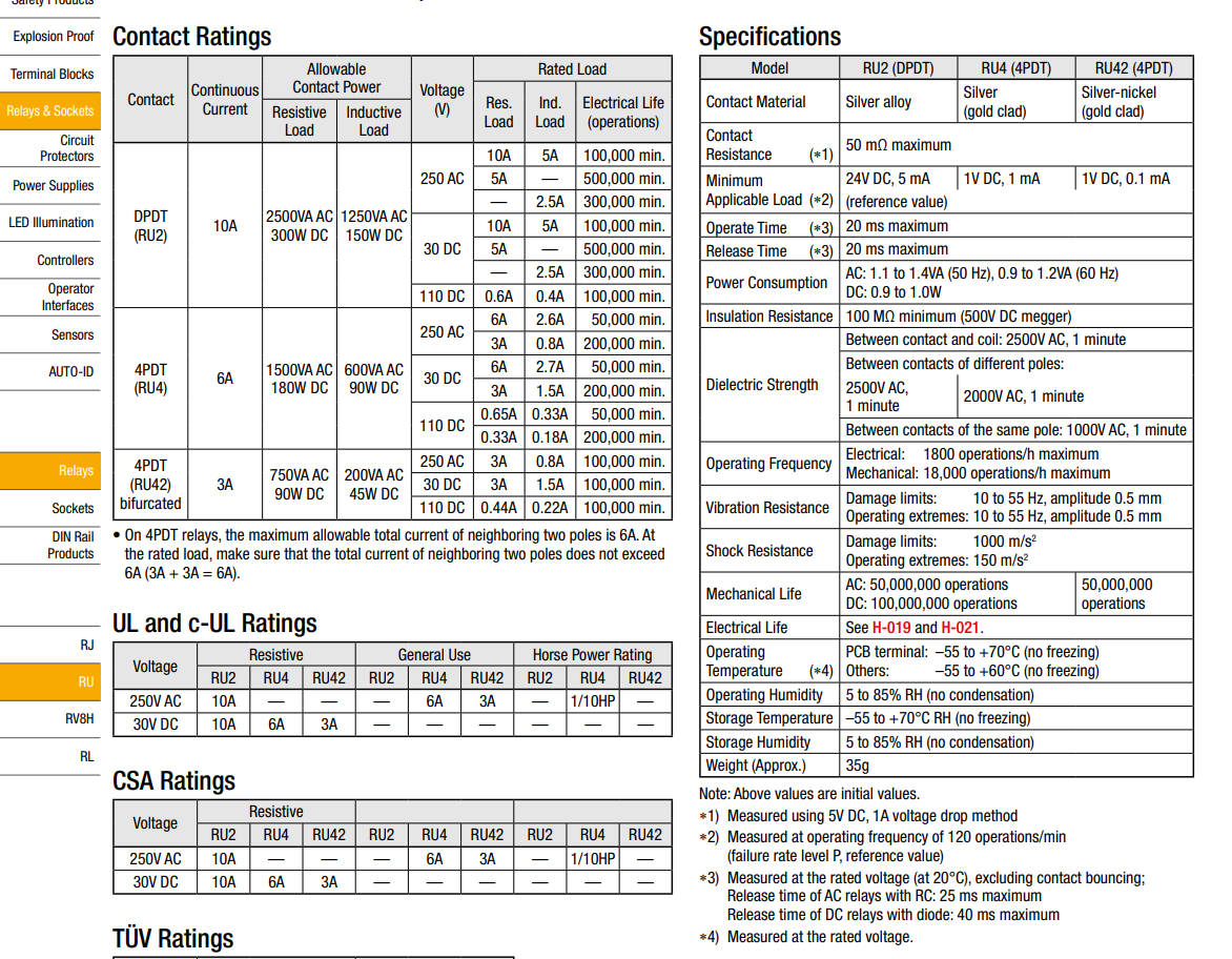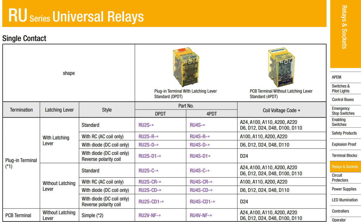 RU2S-C-A100 IDEC 100-110VAC Power Relay, DPDT, 10 A, RU Series, Socket, Non Latching