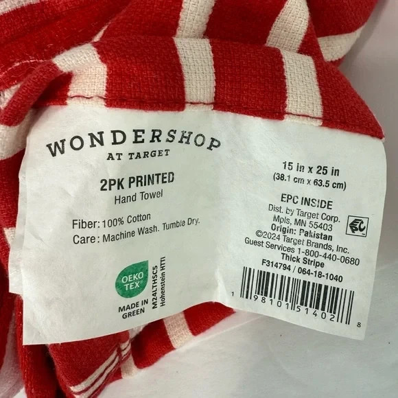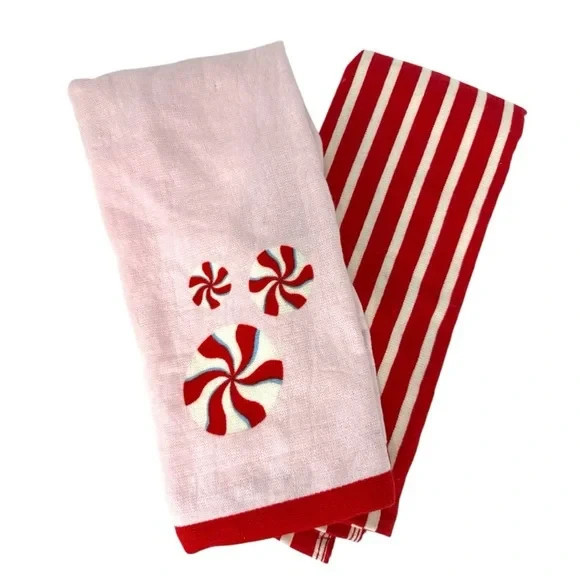 Wondershop Hand Towels Christmas Pink PeppermintSwirl Red White Stripes 2 pack