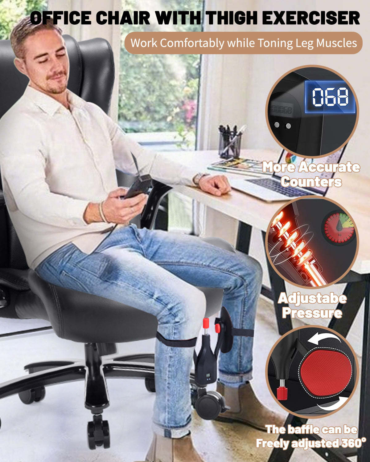 ?Executive Chair with Built-In Thigh Master? Designed for discerning professionals, this ergonomic executive office chair seamlessly blends ergonomic sophistication with discreet fitness innovation. The built-in adjustable Thigh Master system empowers you to engage leg muscles subtly during video calls, report drafting, or extended meetings ? no gym breaks required.