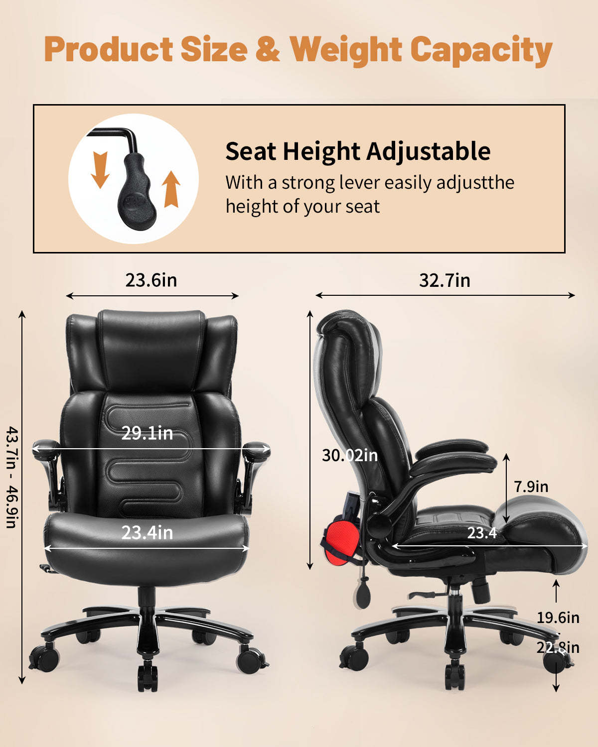 ?500lbs Big and Tall Office Chair?Would you like to be held warmly by a chair? That's right, big and wide office chair is for you. Our extra wide rolling chairs is designed with an ergonomic form, versatile adjustments, and a heavy-duty metal base. Perfect for big and tall adults, it delivers unparalleled comfort, support, and functionality. Elevate your workspace with the office chairs.