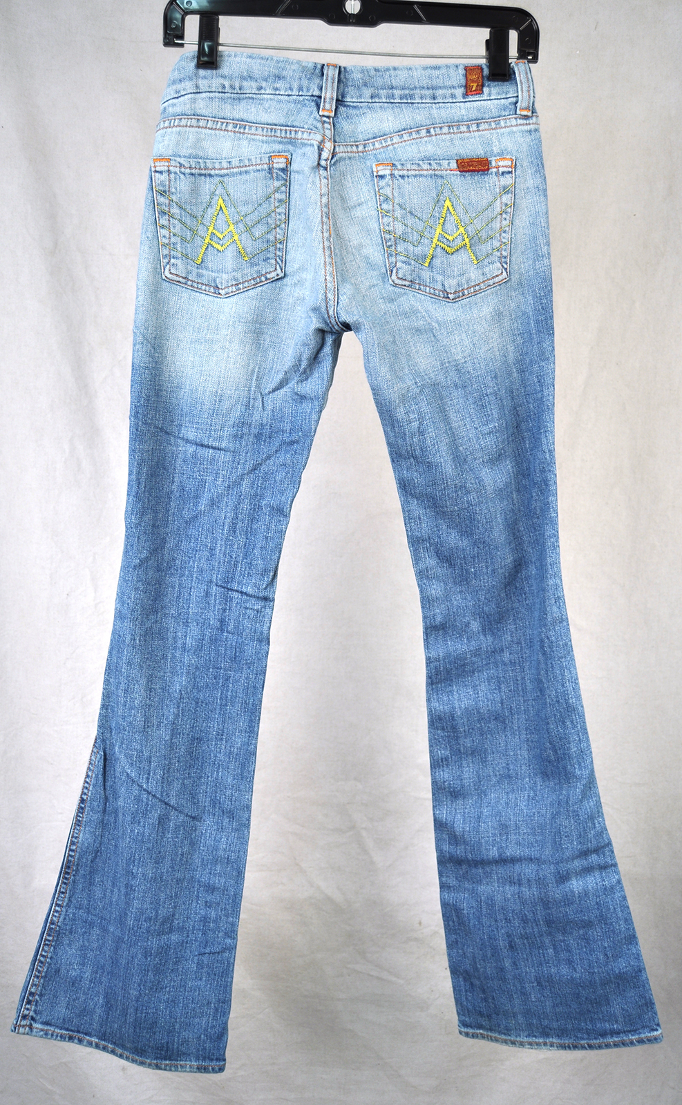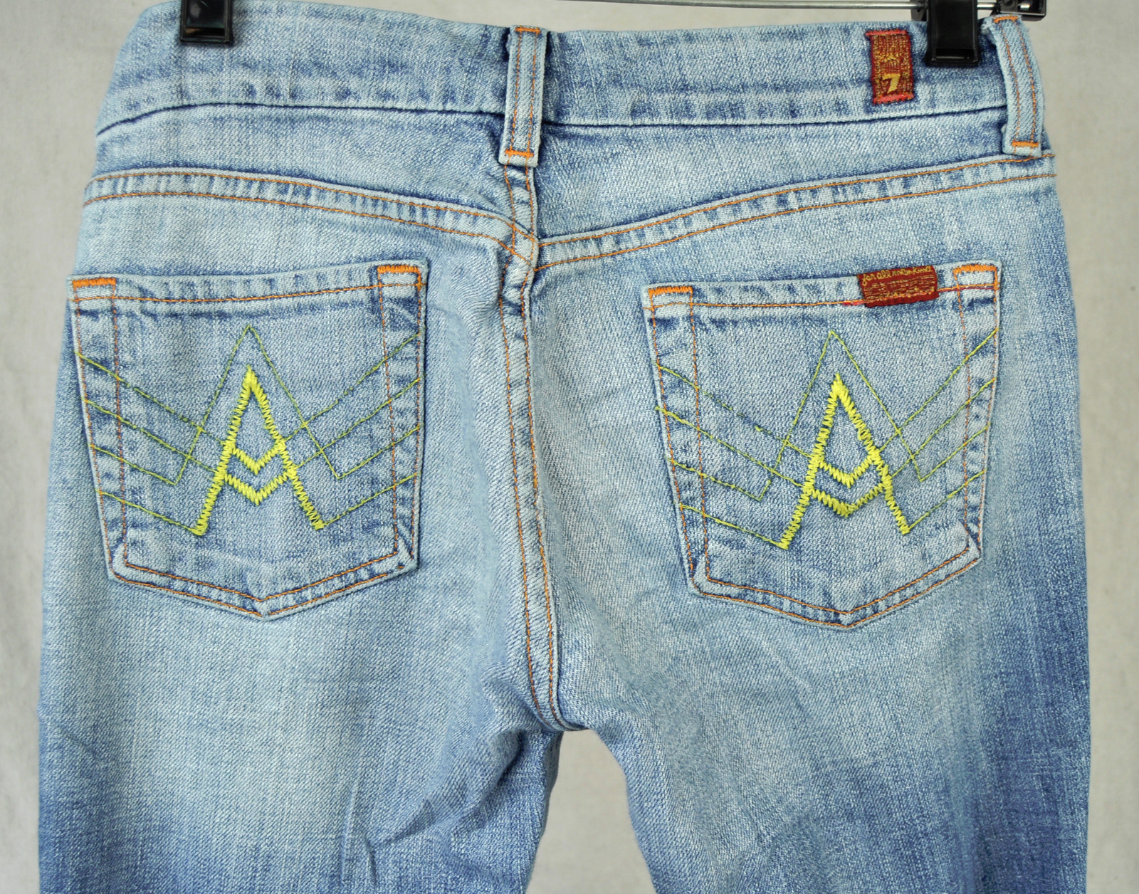 7 For All Mankind Seven A Pocket Windsor Lemon Yellow Blue Jeans 26 USA