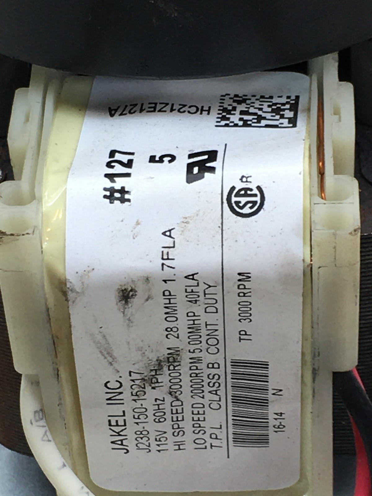 This is Jakel J238-150-15217 Draft Inducer Blower Motor Assembly HC21ZE127A used part.