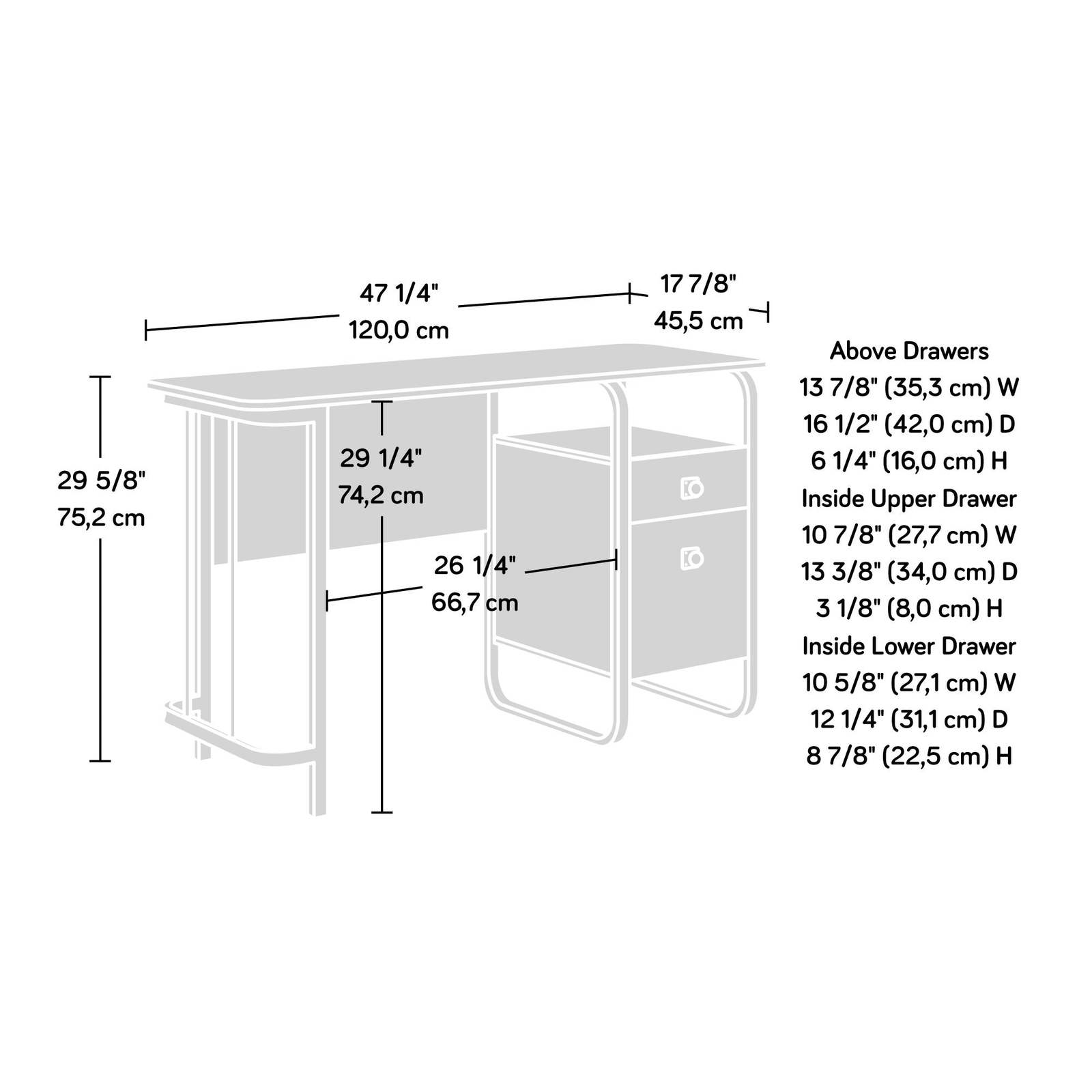 Assembled Length (in.) 47.24 Assembled Width (in.) 17.91 Assembled Height (in.) 29.61 Weight (lbs) 66.77