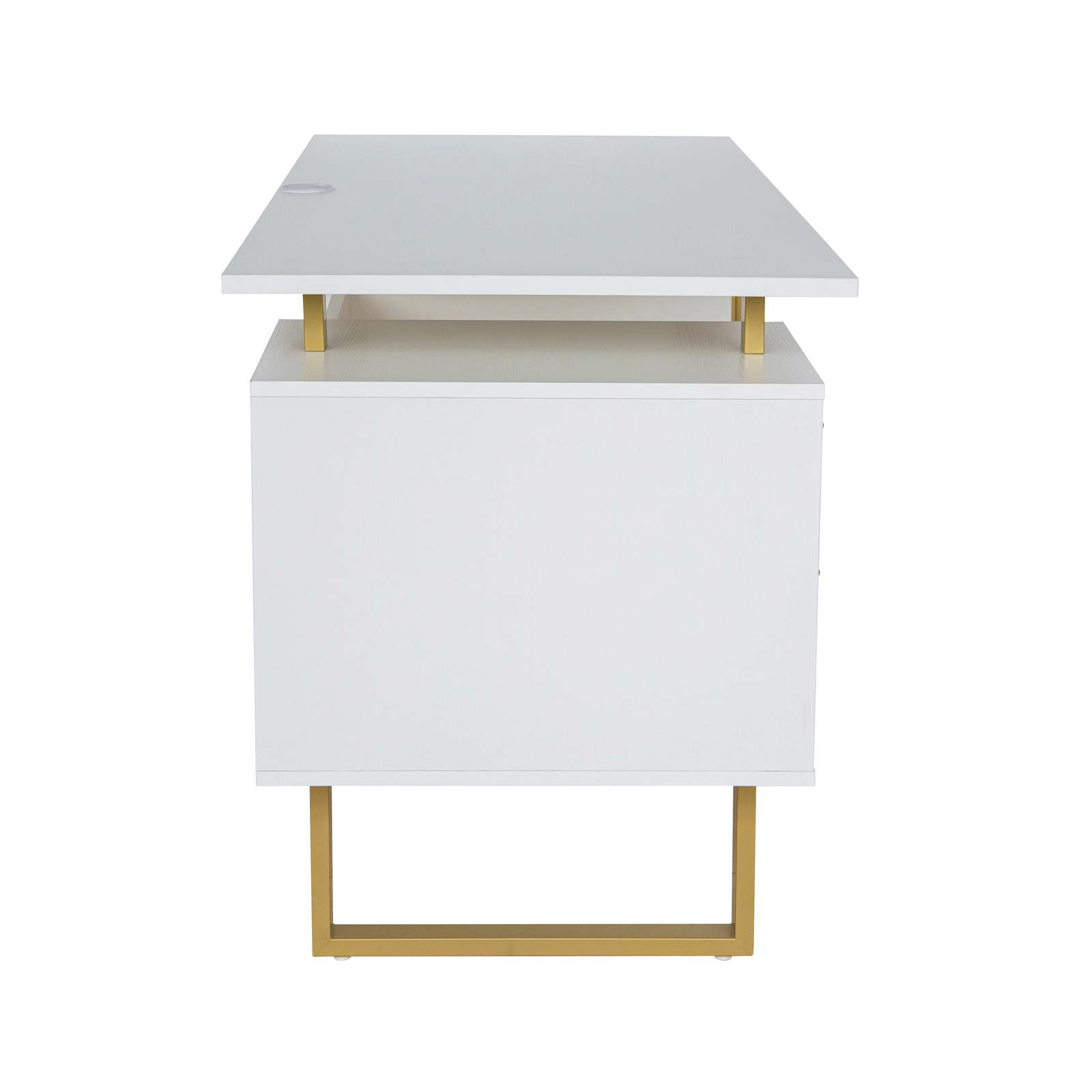 Crafted with clean lines, a floating work surface durable gold metal legs, this desk with drawers for home office not only adds pizzaz to your workplace but also ensures long lasting use.
