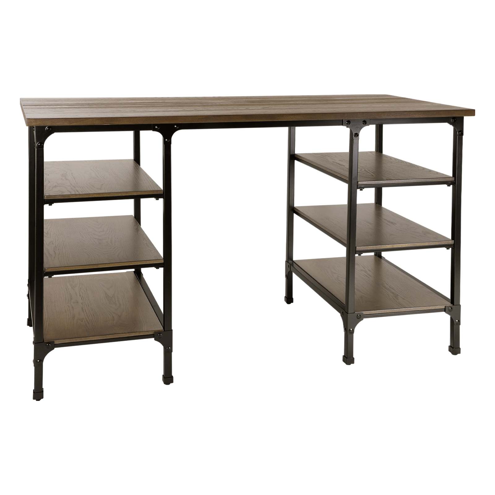 With a look that blends the transitional design element of wood and accenting that lends to a modern traditional aesthetic, the Millwood Collection will help to create the ambiance that you are looking to achieve in your home office. The decorative metal base and framing of the counter height writing desk paired with the casual contrast of the distressed ash veneer of the shelving and desk?s top create an industrial look for your office. 26-inch wide bookcase, 40-inch wide bookcase, desk and TV stand are also available.