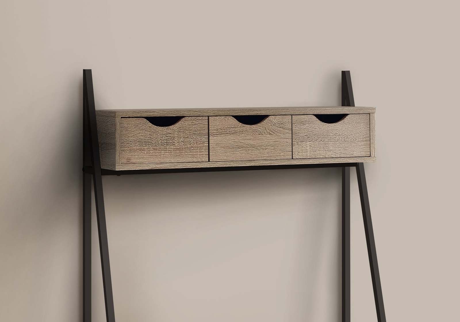 Strong black metal framing to hold a spacious work surface to place a laptop, lamp, and office accessories