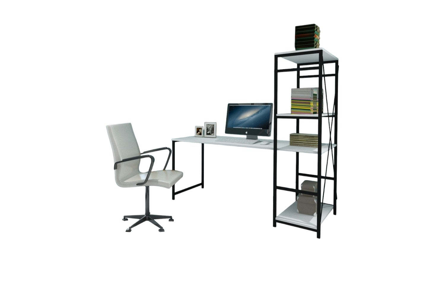 This modern desk offers a perfect blend of style, functionality, and minimalism for any home office or study space. Featuring a sleek white tabletop paired with a sturdy black metal frame, it creates a clean and professional look.