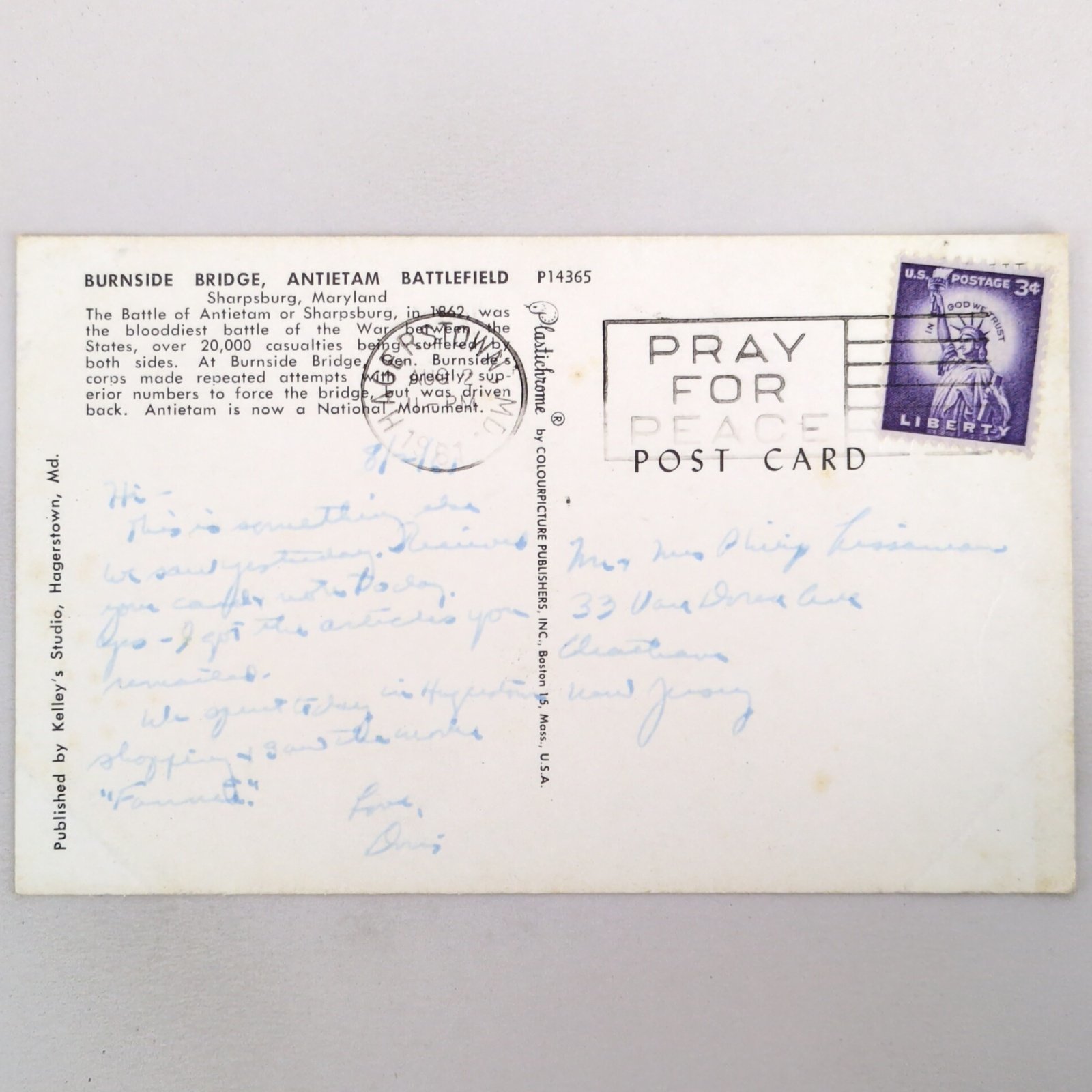 Burnside Bridge Antietam Battlefield Sharpsburg MD 1950s Postcard Civil War 1961