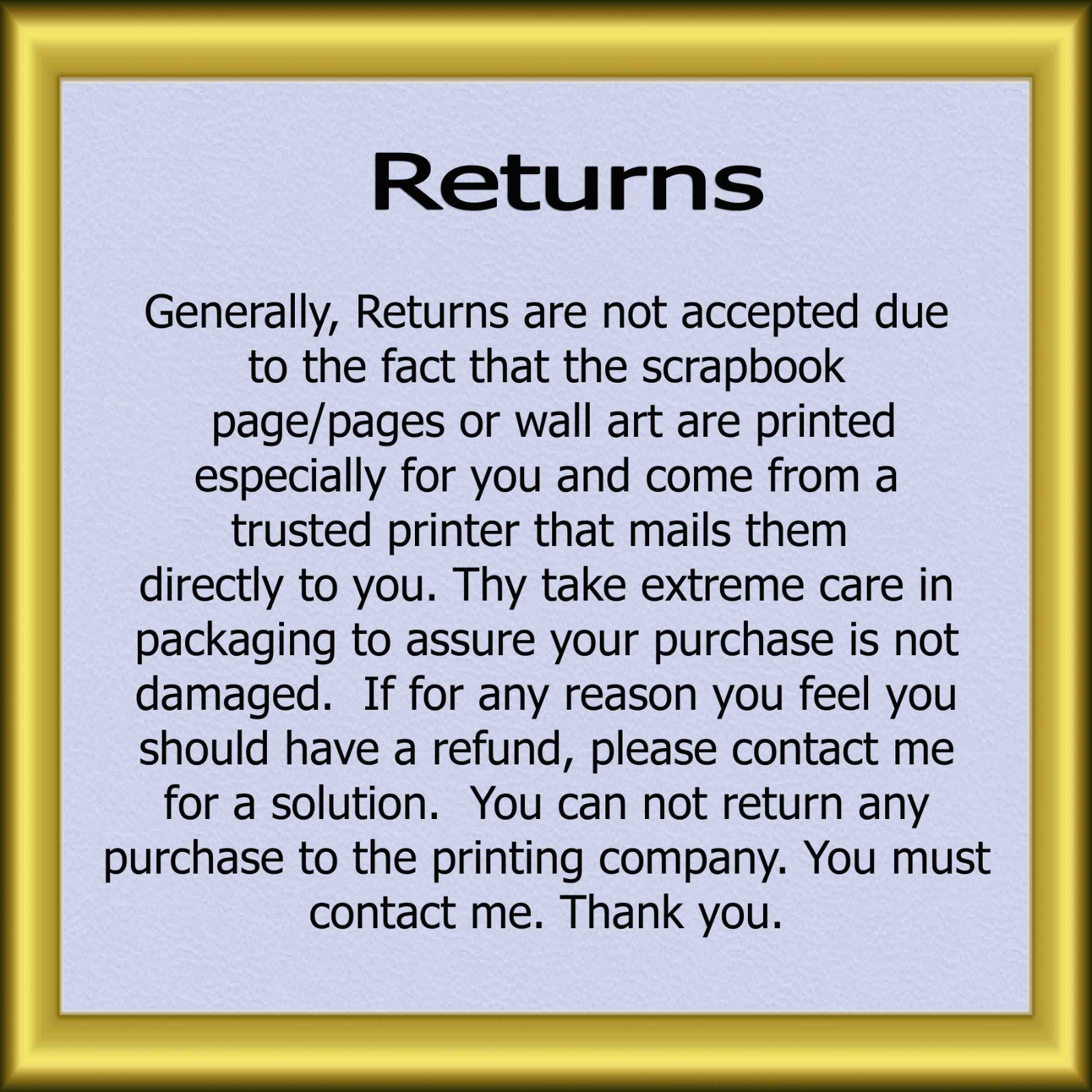 that the scrapbook page/pages or Wall art are printed especially for you and