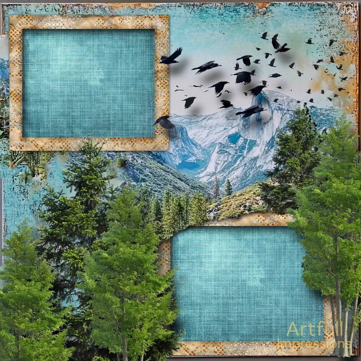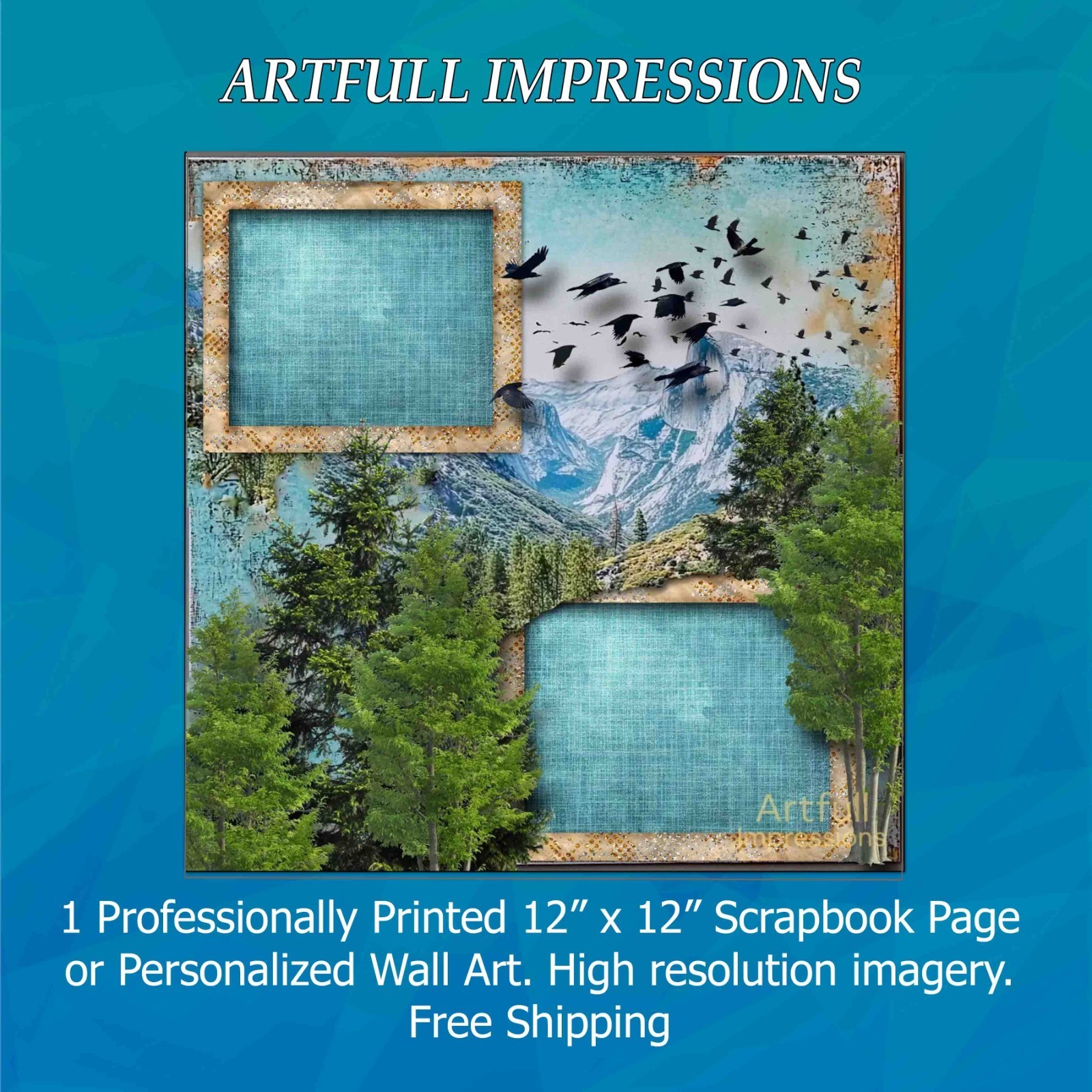 Western Majestic Mountains Scene Personalized Wall Art or Scrapbook Page