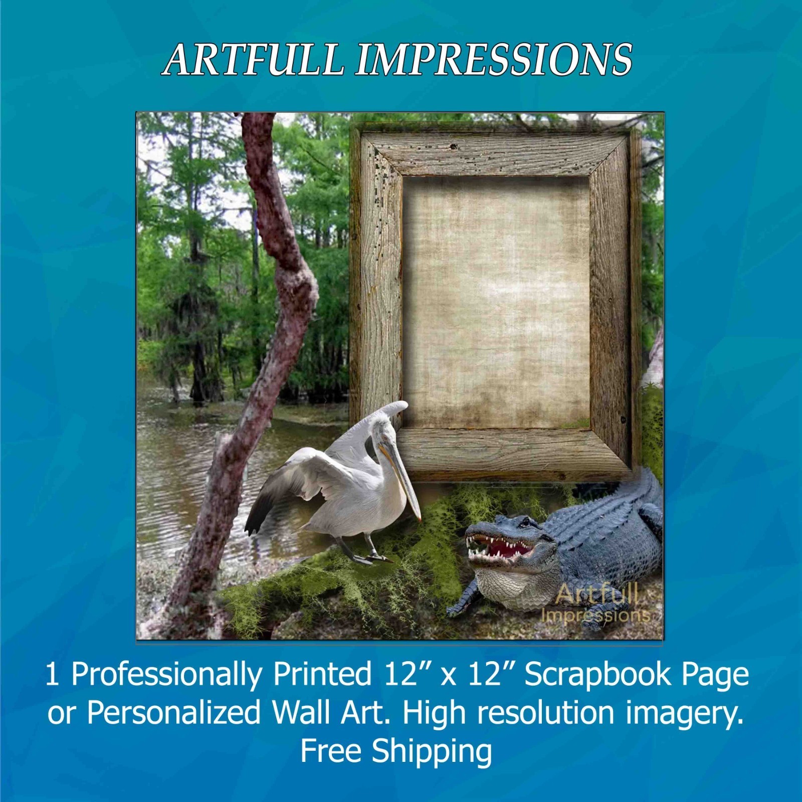 Southern Bayou Rustic Wildlife Personalized Wall Art or Scrapbook Page