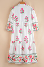 White Floral Print Half Button Mandarin Neck 3/4 Sleeve Maxi Dress