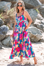 Green Floral Print Sleeveless Ruffle Tiered Maxi D...