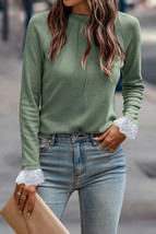 Black Floral Lace Patchwork Long Sleeve High Neck ...